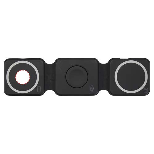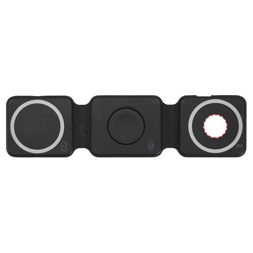 Skládací bezdrátová nabíječka 3v1 Armus z recyklovaného plastu s výkonem 15 W, Solid black