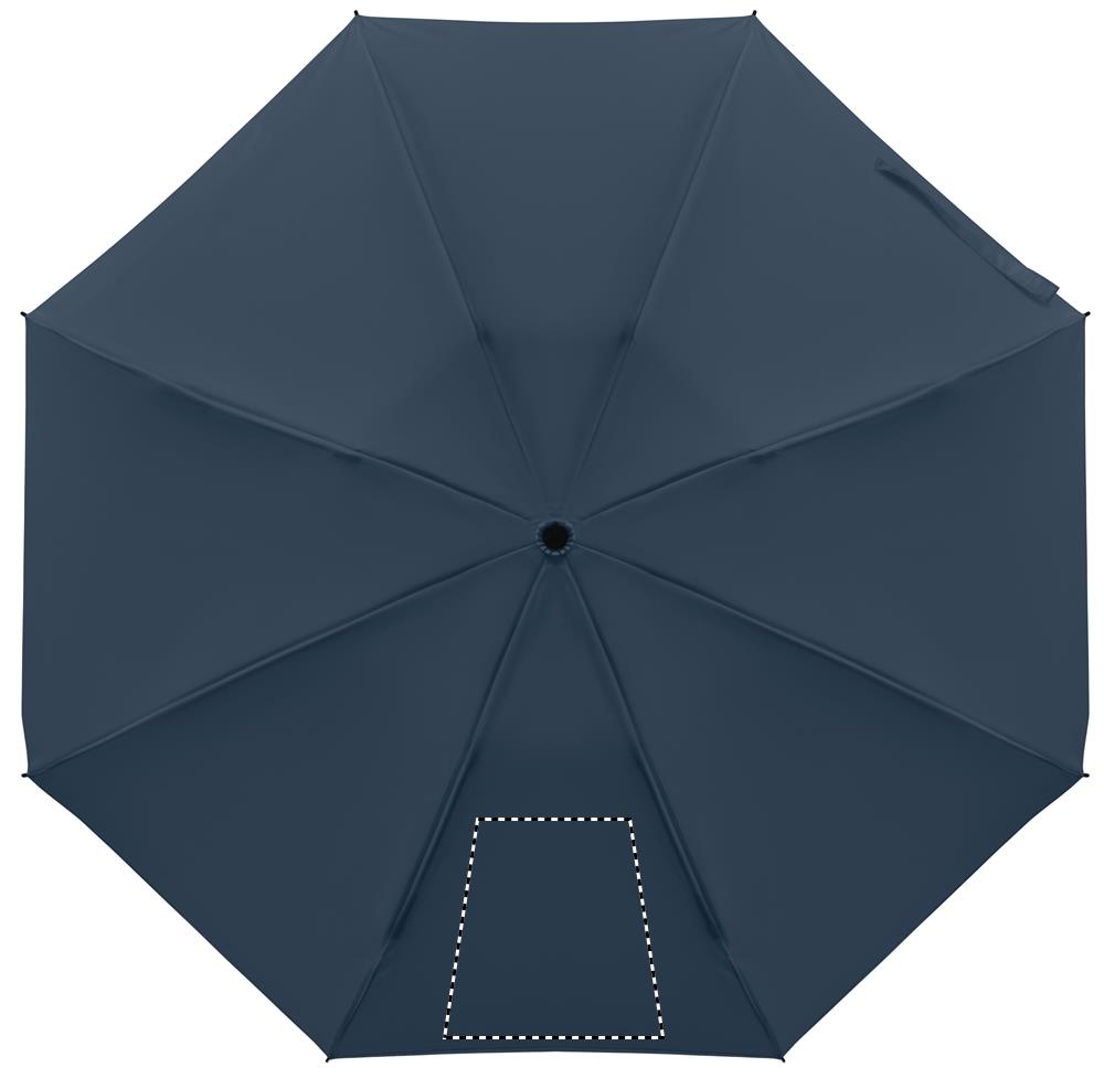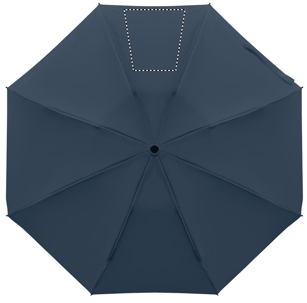 23palcový skládací větruodolný deštník ze 190T RPET pongee v obalu. Automatické otevírání a zavírání. Černá pokovená tyč, žebra ze sklolaminátu a rukojeť z ABS s gumovou povrchovou úpravou.