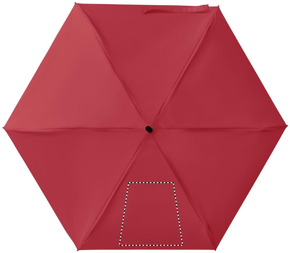 19palcový manuální skládací deštník z 190T pongee v obalu. Kovový a sklolaminátový větruodolný rám, černá pogumovaná rukojeť s popruhem na zápěstí. Kompaktní velikost, ve složeném stavu 17 cm.