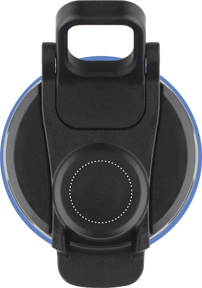 Skládací silikonová sportovní láhev s PP víčkem, rukojetí, polyesterovým popruhem a průhlednou sponou pro zajištění ve složeném stavu. Objem: 500 ml.