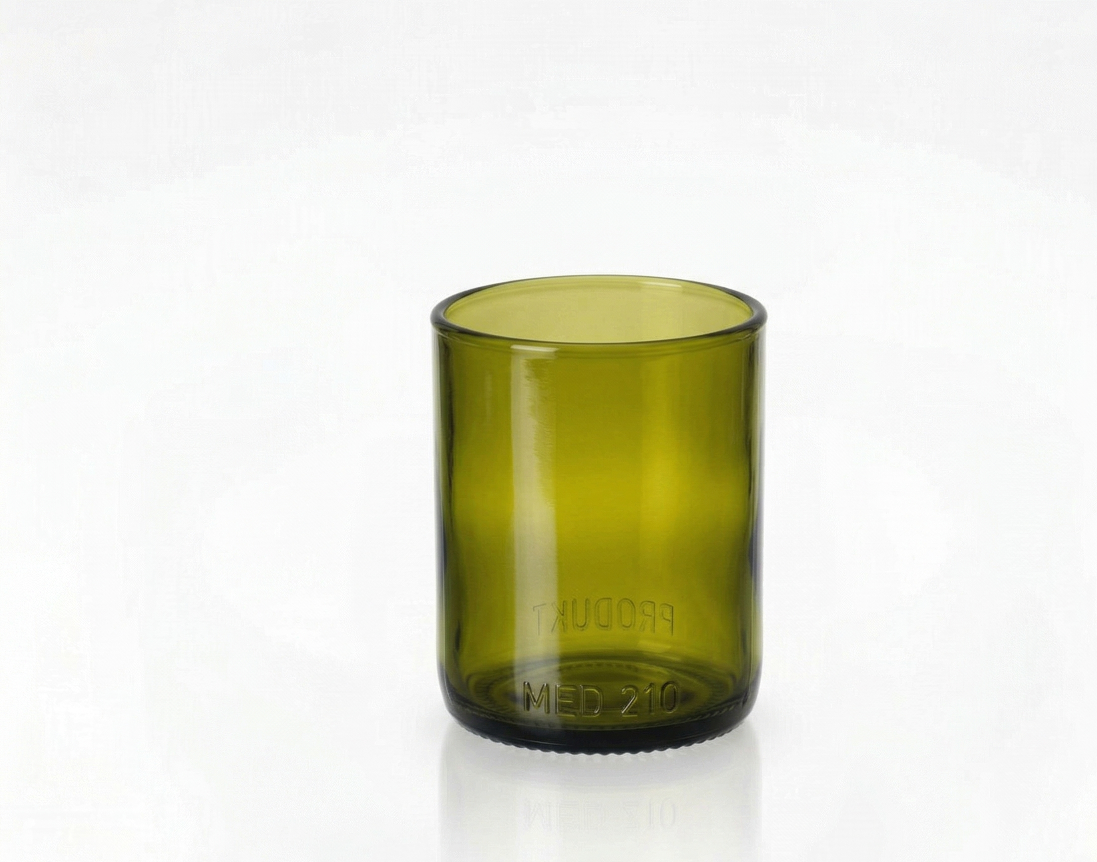 Sklenice jsou vyrobené z lahví od vína a mají jednoduchý, nadčasový tvar. Sklo je masivnější, takže sklenice působí pevně a stabilně. Okraj je ručně otavovaný a dokonale hladký, dno je téměř ploché.