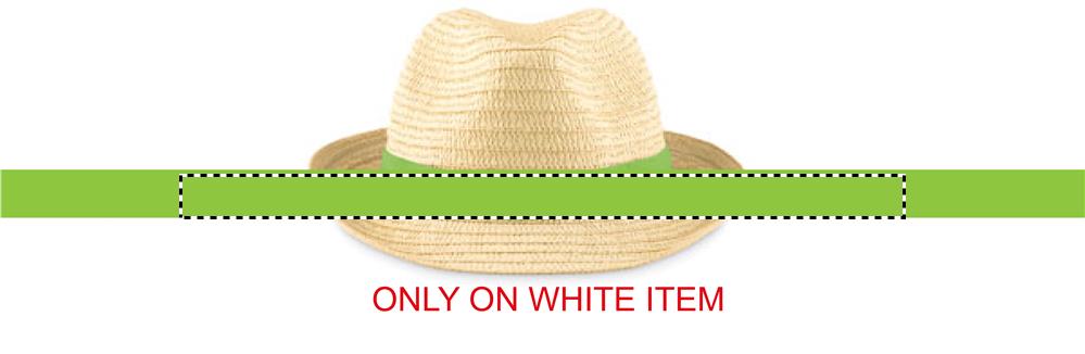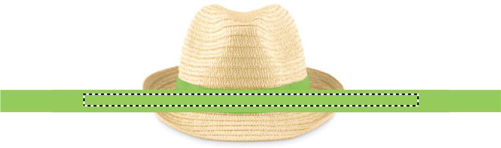 Papírový slamák s barevným polyesterovým páskem. Pro zakázky bez potisku budou pásky dodány zvlášť, neuchycené ke klobouku.