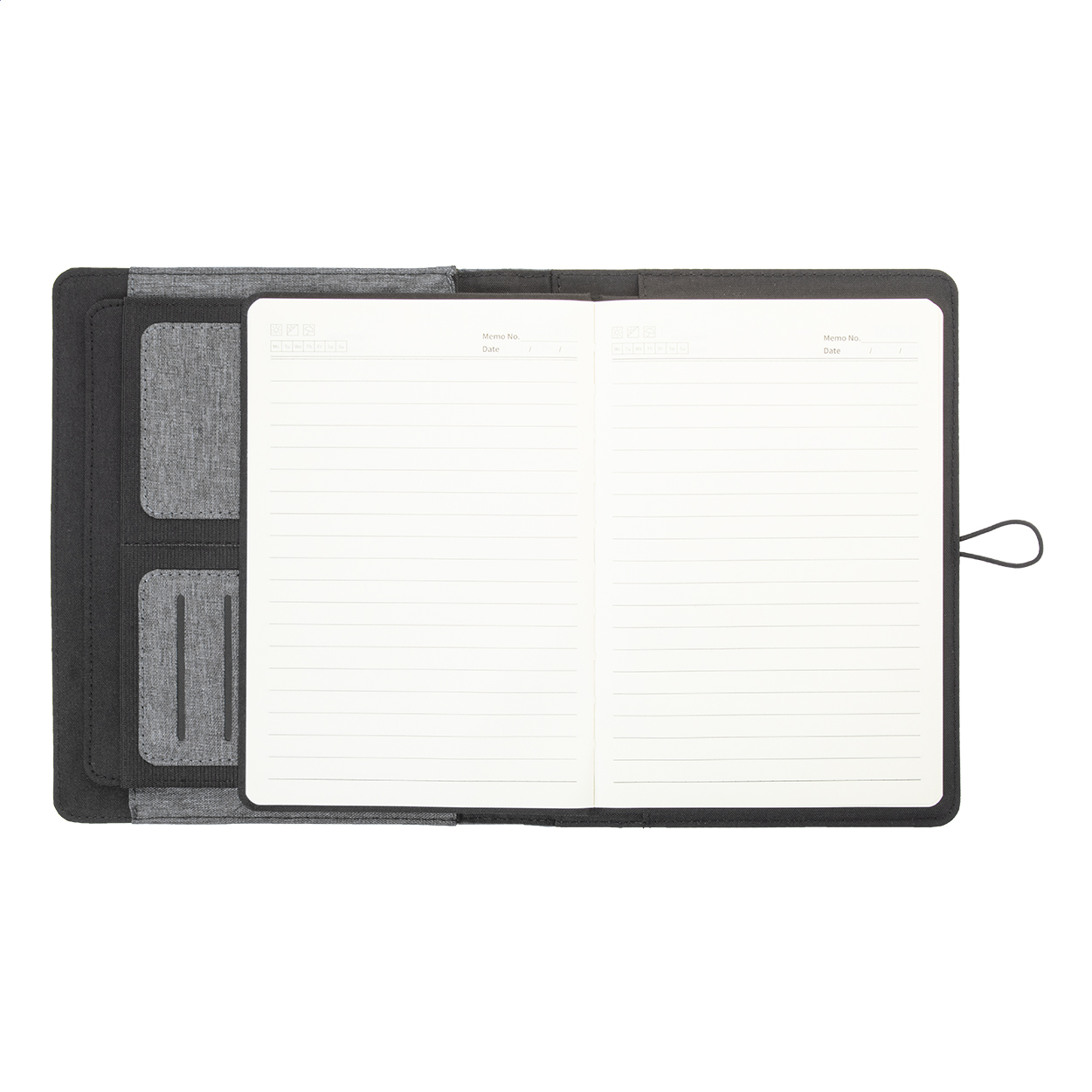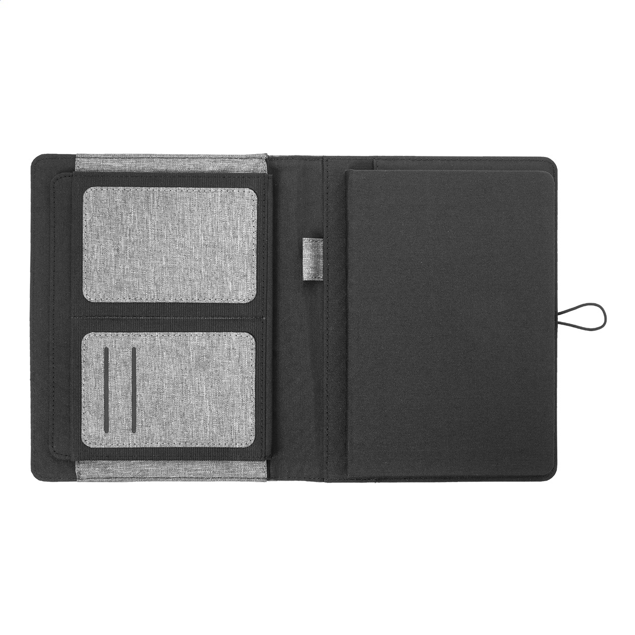 Polyesterová složka na dokumenty A5 z 300D RPET s 64 linkovaným poznámkovým blokem a několika vnitřními kapsami s organizérem.