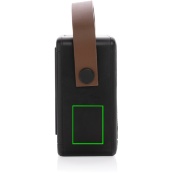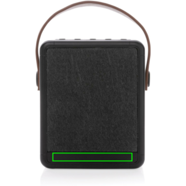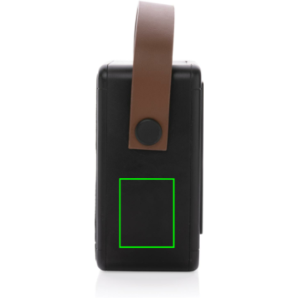 Černý solární reproduktor TEED přináší výkon 12 W pro intenzivní hudební zážitek kdekoli v terénu. Horní strana nese rozměrný monokrystalický panel s vysokou účinností konverze, který doplňuje energii akumulátoru přímo ze slunečního záření. Konstrukce využívá recyklovaný ABS plast splňující standardy RCS pro ochranu životního prostředí.