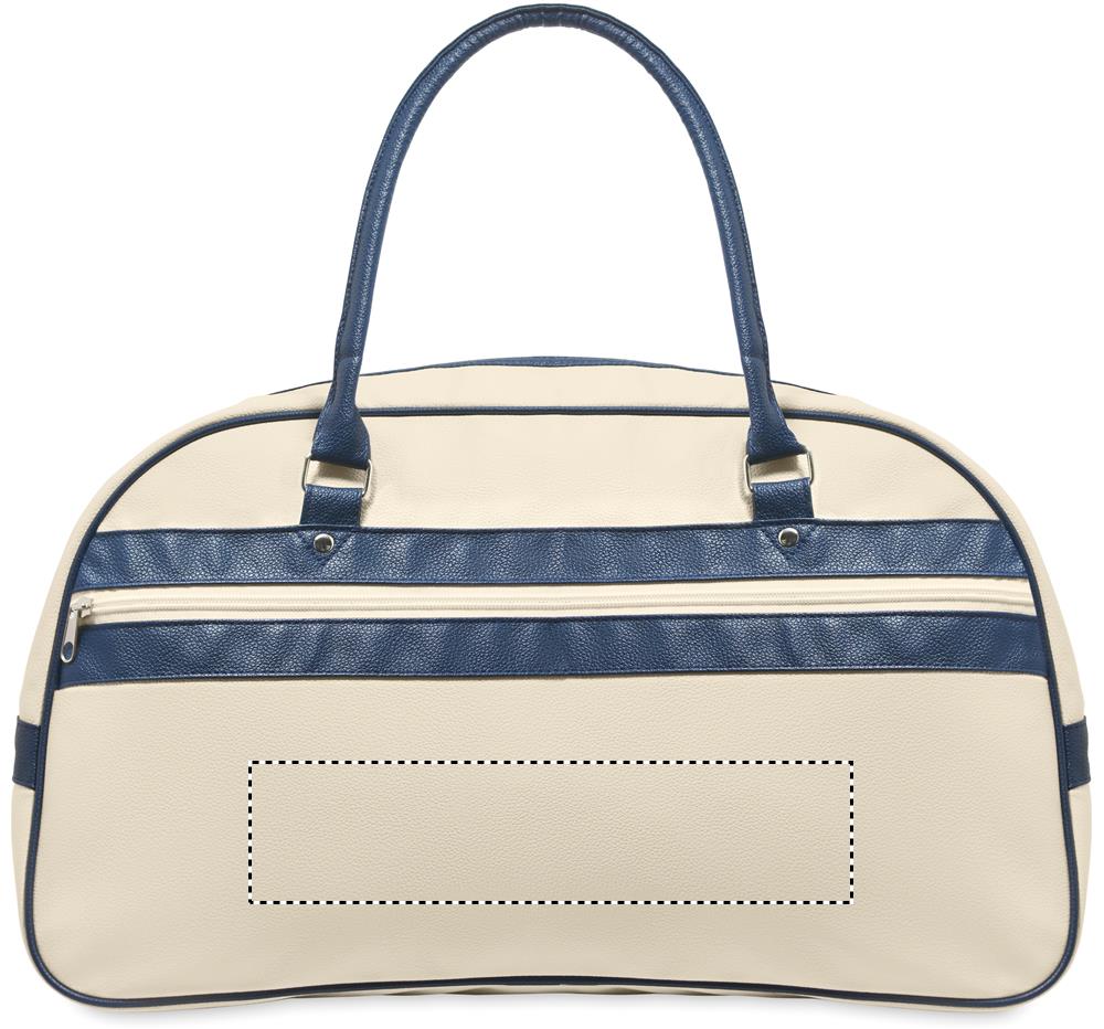 Sportovní taška z PU. Vnitřní podšívka, hlavní přihrádka a kapsa na zip, pevná ucha s cvočky a vsadka na dně. Objem cca 21,5 litru.