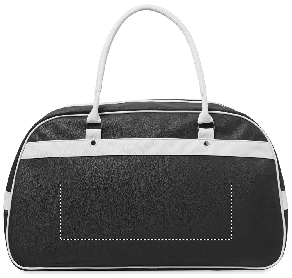 Sportovní taška z PU. Vnitřní podšívka, hlavní přihrádka a kapsa na zip, pevná ucha s cvočky a vsadka na dně. Objem cca 21,5 litru.