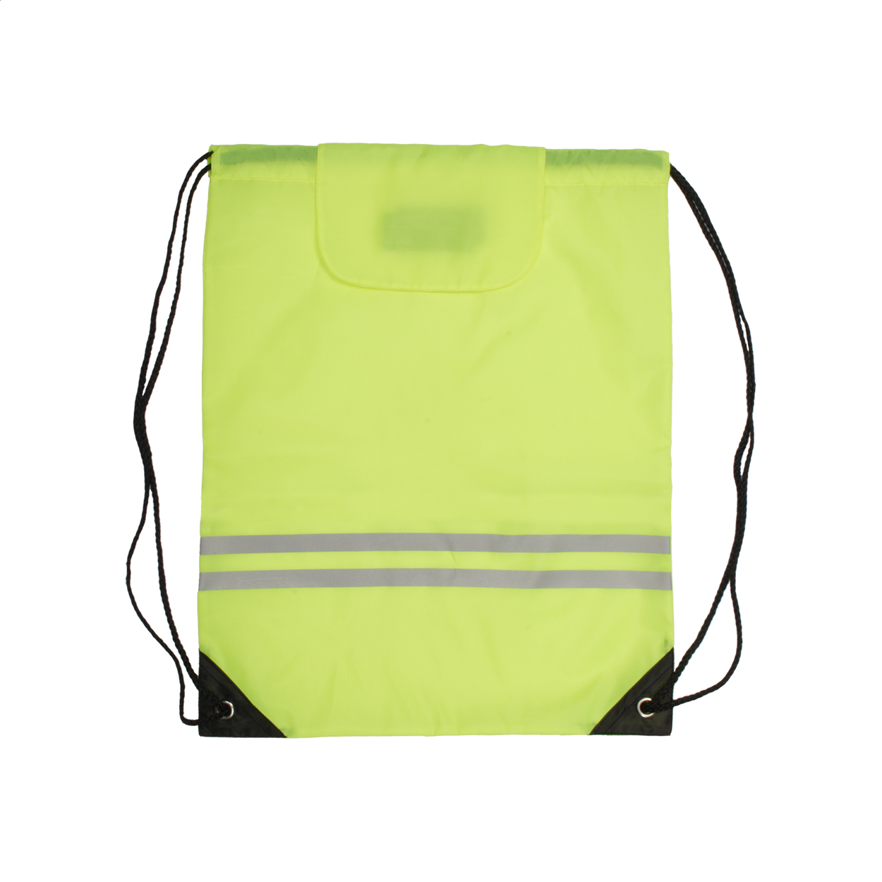 Batůžek se stahovacími šňůrkami a 2 reflexními pruhy. Vrchní klopa se zapínáním na suchý zip.