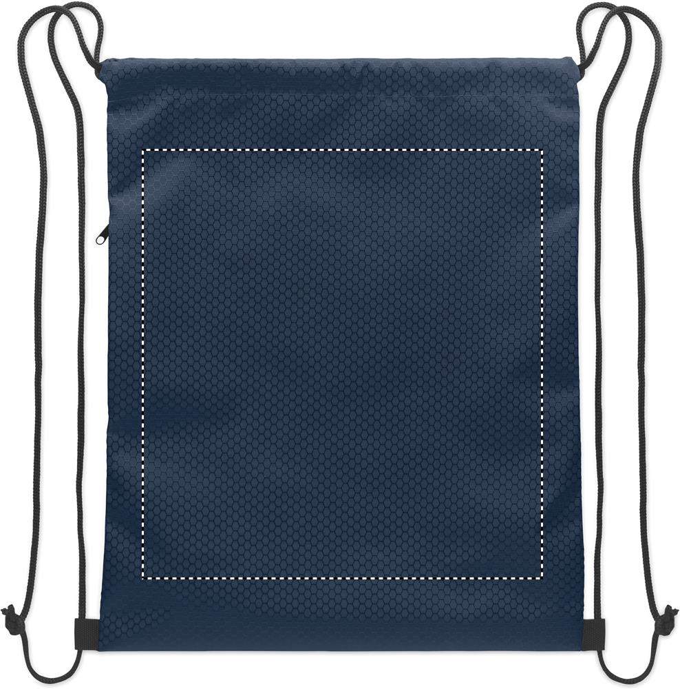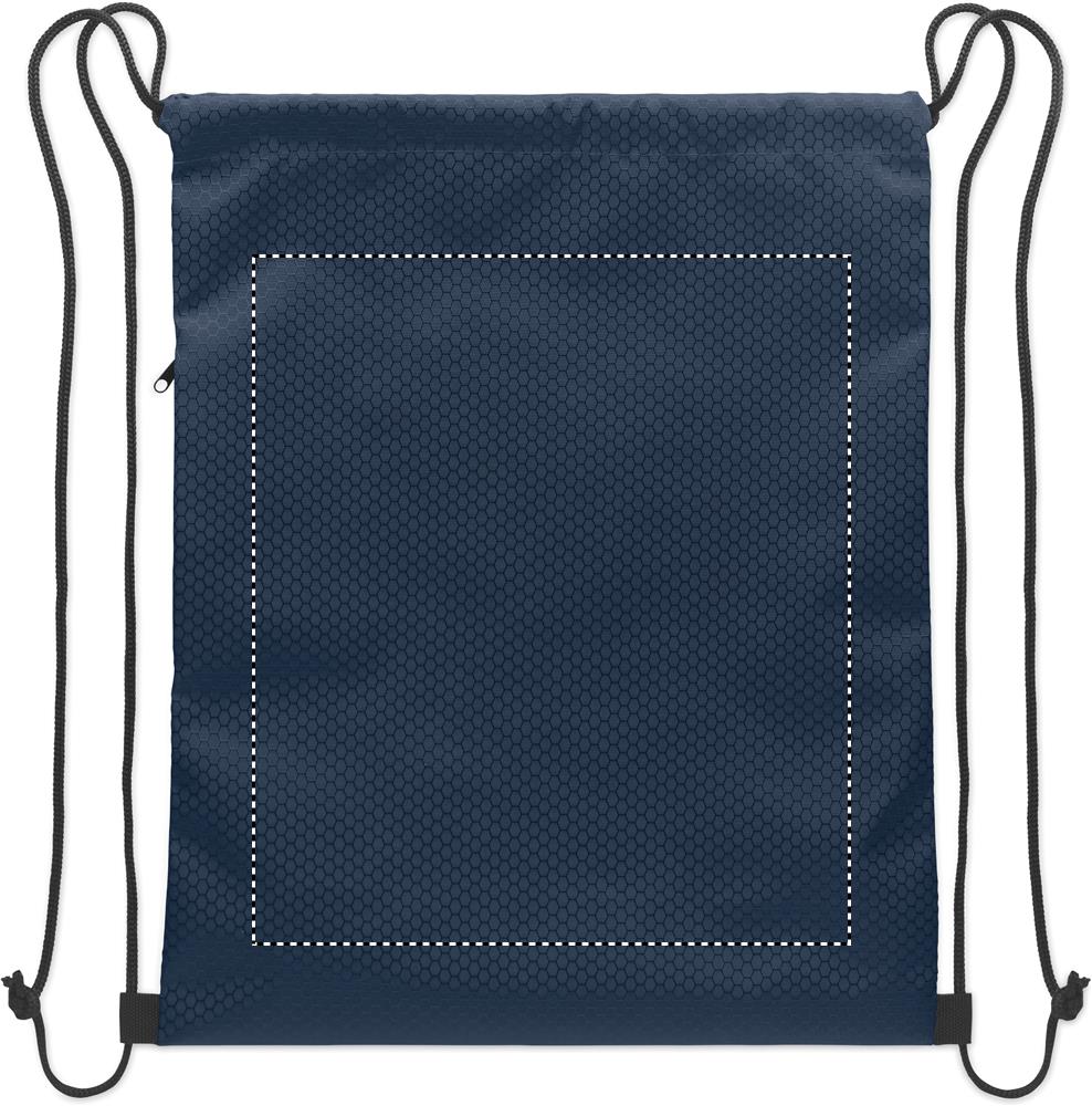 Stahovací batoh z polyesteru RPET 420D s vertikální boční kapsou na zip a podšívkou z materiálu RPET 210D. Pevné šňůrky, objem 4,5 l, maximální nosnost 5 kg.
