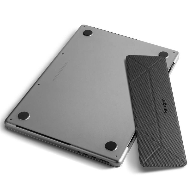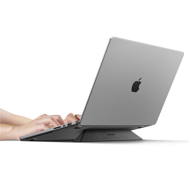 Flexibilní stojánek Spigen Slimfold Laptop Stand LD201-S4 poskytuje okamžitou ergonomickou podporu pro notebook, tablet nebo externí klávesnici. Lehká skládací konstrukce z pevného PU materiálu s texturovaným povrchem zaručuje bezpečné usazení techniky bez nechtěného posouvání. Zvednutí zařízení do optimální výšky pomáhá snižovat napětí v ramenou a zlepšovat držení těla při celodenní práci.