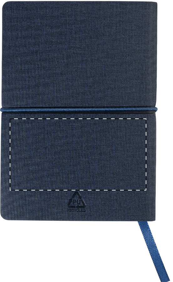 Blok A6 s recyklovanou PU kůží, 70 linkovanými listy z recyklovaného papíru, 25 samolepicími papírky a 125 značkovači stránek (v 5 různých barvách). Se záložkou a horizontálním gumovým páskem.