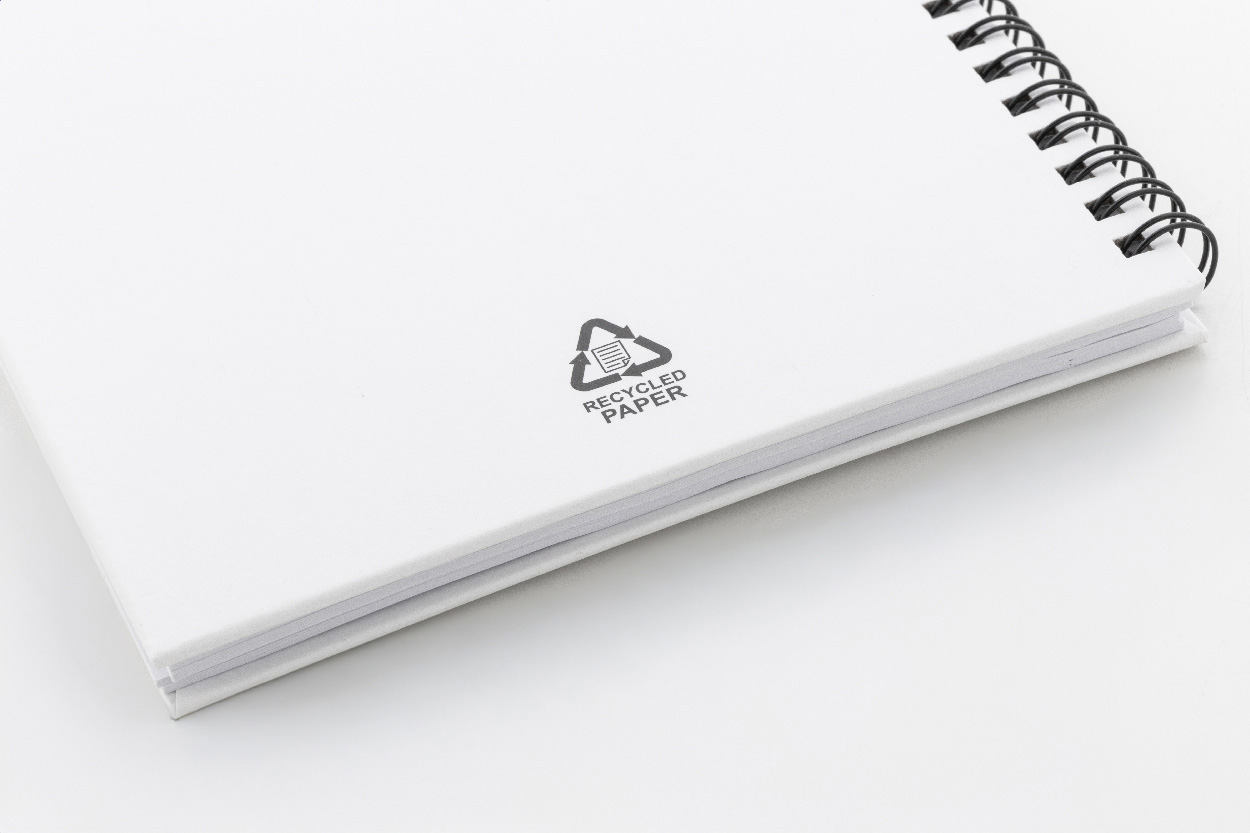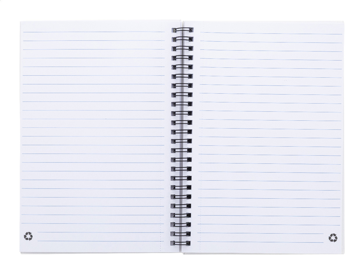 Spirálový blok A5 s 80 linkovanými listy z recyklovaného papíru.