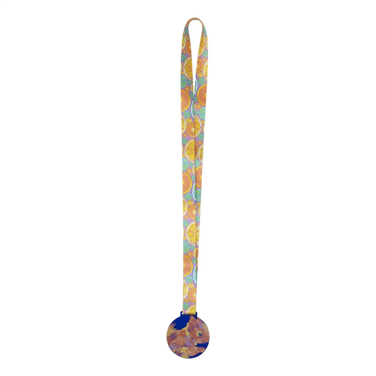 Zakázková akrylová medaile s plnobarevnou grafikou. Na sublimačním potištěném RPET lanyardu. Cena zahrnuje sublimaci a UV LED tisk, nezahrnuje tiskové přípravy. Min. mn.: 100 ks.