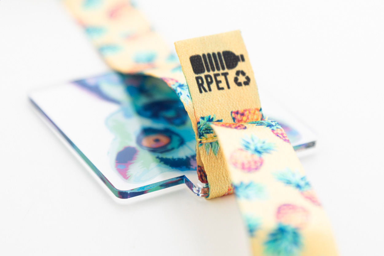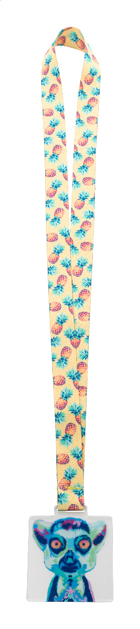 Čtvercová akrylová medaile na zakázku s plnobarevnou grafikou. Na sublimační potištěné RPET šňůrce. Cena zahrnuje sublimační a UV LED potisk, nezahrnuje tiskovou přípravu. Min. mn.: 100 ks.