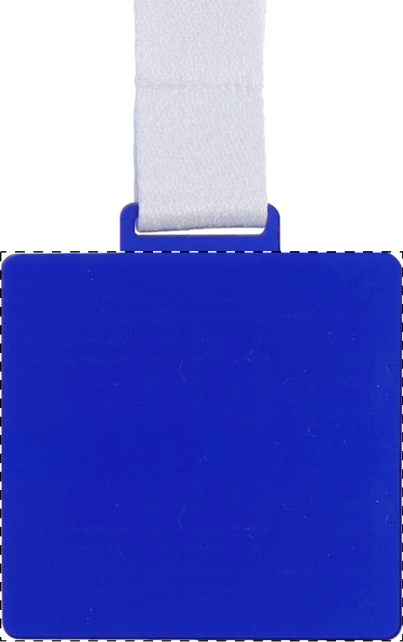 Čtvercová akrylová medaile na zakázku s plnobarevnou grafikou. Na sublimační potištěné RPET šňůrce. Cena zahrnuje sublimační a UV LED potisk, nezahrnuje tiskovou přípravu. Min. mn.: 100 ks.