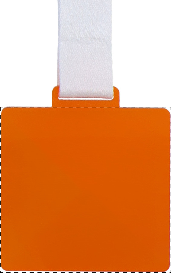 Čtvercová akrylová medaile na zakázku s plnobarevnou grafikou. Na sublimační potištěné RPET šňůrce. Cena zahrnuje sublimační a UV LED potisk, nezahrnuje tiskovou přípravu. Min. mn.: 100 ks.