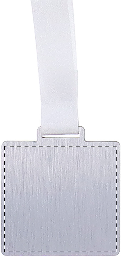 Medaile z kartáčovaného hliníkového kompozitu čtvercového tvaru s barevnou grafikou na zakázku. Lanyard z RPET s sublimačním potiskem. Cena zahrnuje sublimační a UV LED tisk, nezahrnuje tiskové přípravy. Min. mn.: 100 ks.