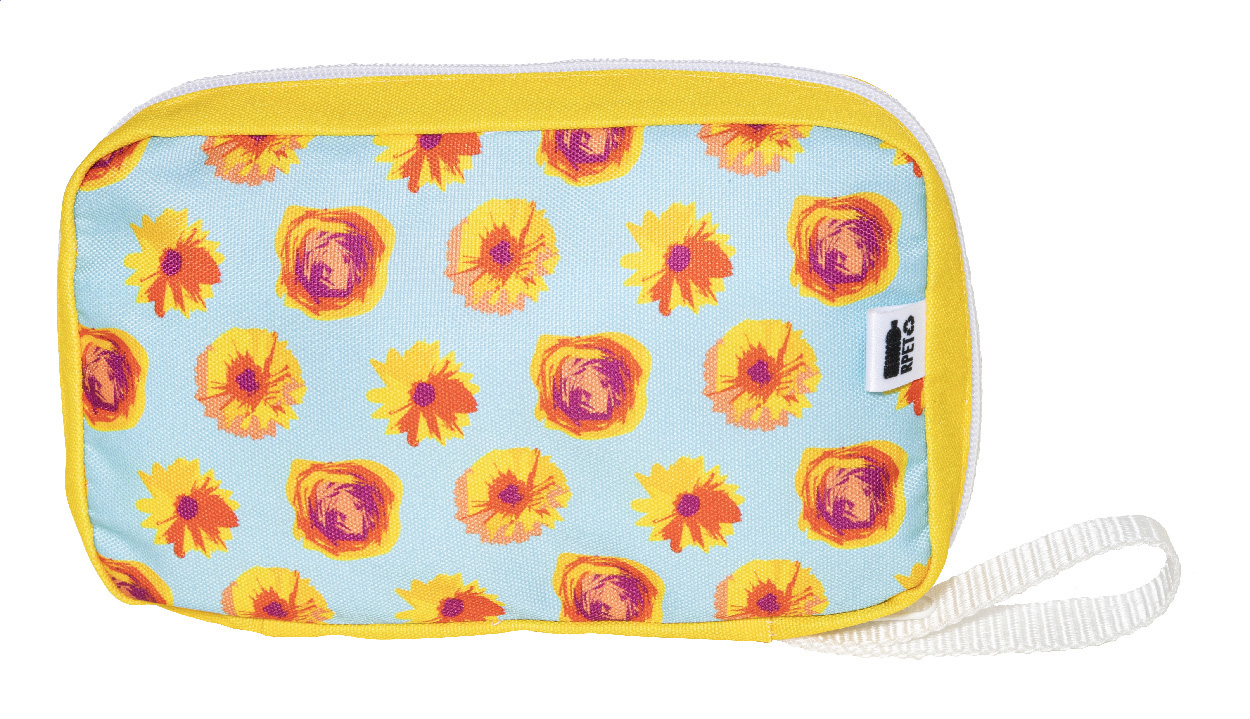 Pouzdro na organizér kabelů z RPET na zakázku na zip se síťovanými přihrádkami uvnitř. S celoplošným sublimačním potiskem, cena nezahrnuje tiskovou přípravu. 600D RPET polyester s výrazným nápisem RPET. Min. mn.: 25 ks.