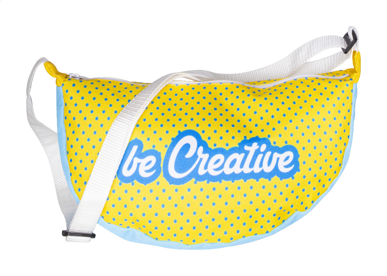 Taška přes rameno vyrobená na zakázku z polyesteru 600D RPET s nastavitelným popruhem a přihrádkou na zip. S celoplošným sublimačním potiskem a výrazným štítkem RPET. Cena nezahrnuje tiskovou přípravu. Min. mn.: 25 ks