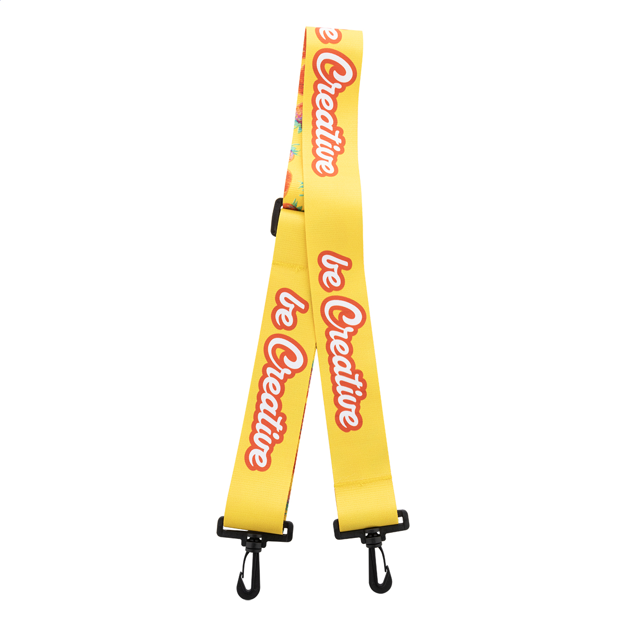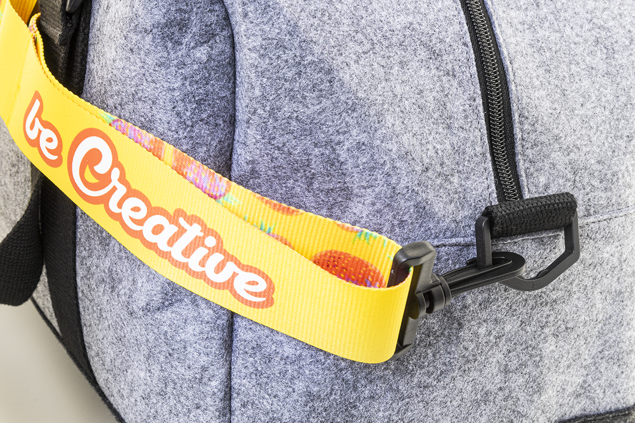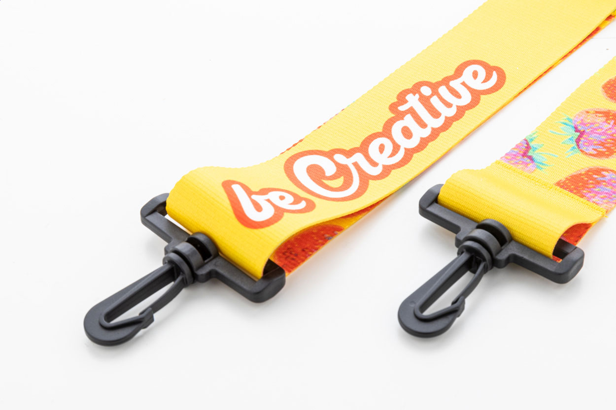 Na zakázku vyrobený, délkově nastavitelný polyesterový ramenní popruh s plastovými karabinami. Se sublimační tištěnou grafikou na obou stranách, cena nezahrnuje tiskovou přípravu. Vhodné pro tašky přes rameno, tašky na dokumenty nebo sportovní tašky. Min. mn.: 50 ks.