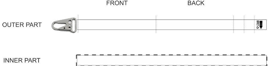 Přívěšek na klíče z polyesteru RPET vyrobený na zakázku s černou kovovou karabinou a klíčenkou v taktickém stylu. S vnitřním štítkem RPET a sublimačním potiskem na obou stranách. Cena nezahrnuje tiskovou přípravu. Min. mn.: 100 ks.