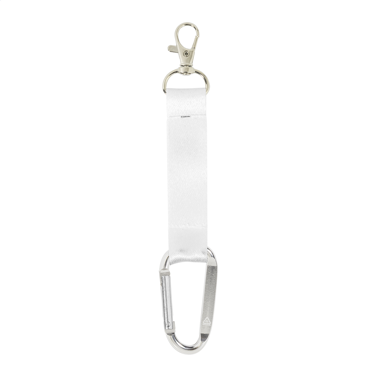 Mini přívěsek na klíče z polyesteru RPET vyrobený na zakázku se sublimačním potiskem po obou stranách. S malou kovovou a velkou karabinou z recyklovaného hliníku. Cena nezahrnuje tiskovou přípravu. Min. mn.: 100 ks.