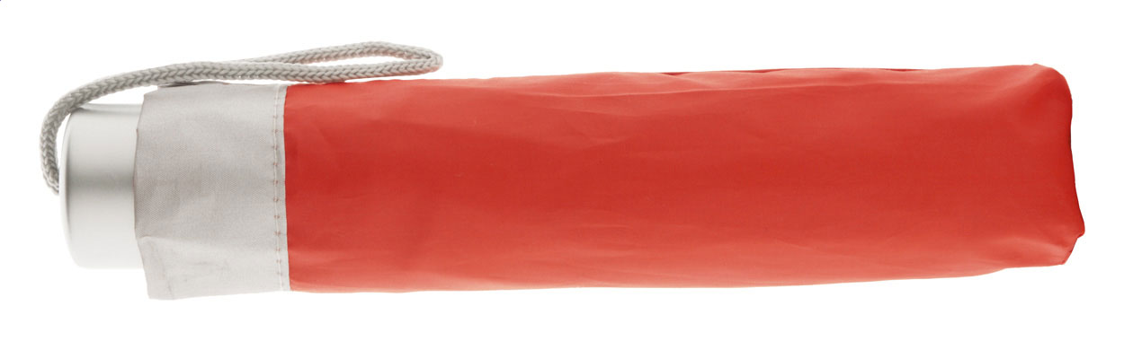 Barevný skládací deštník se stříbrnou rukojetí, včetně obalu. Polyester 170T.