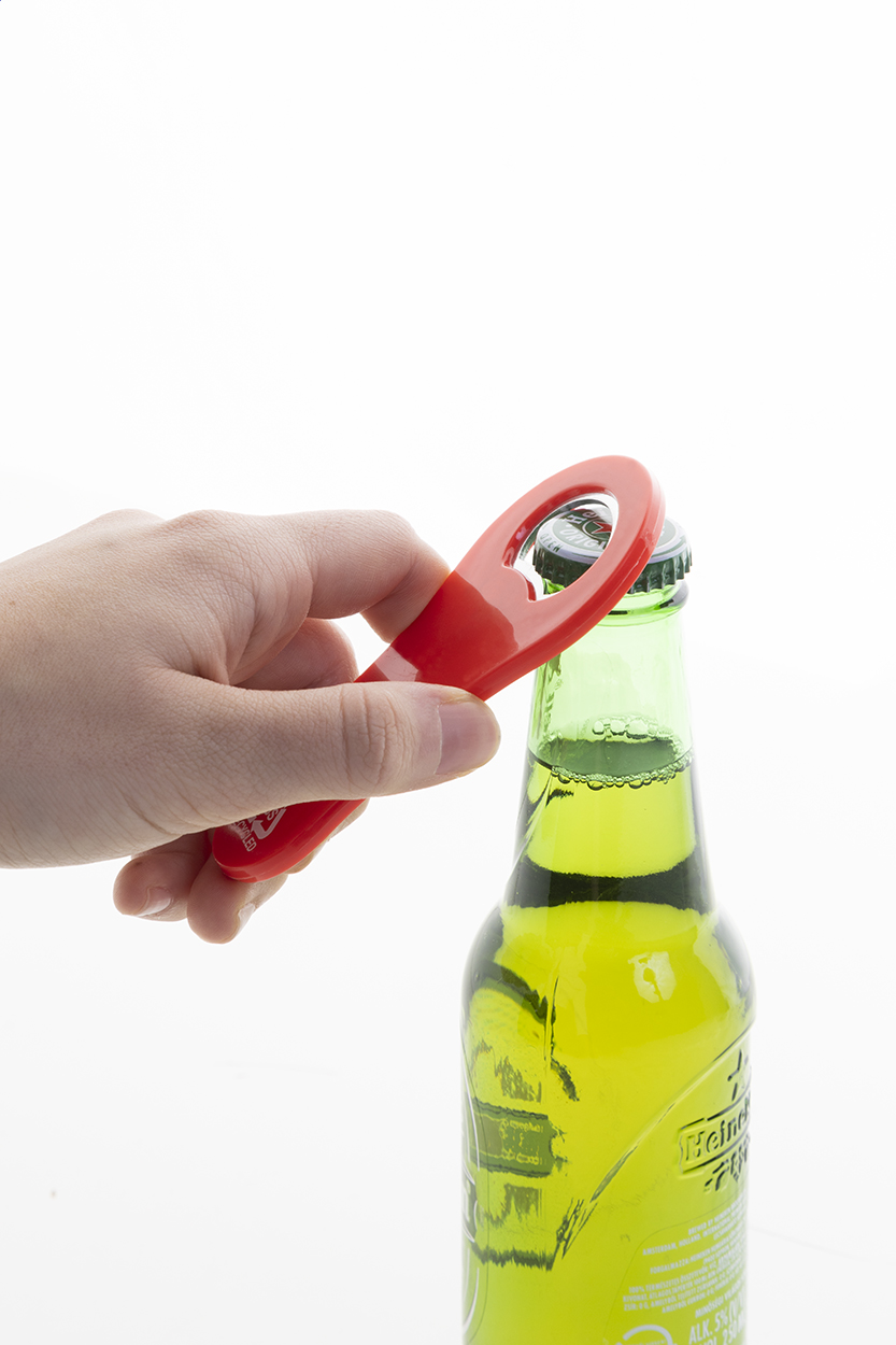 Otvírák na láhve z recyklovaného ABS plastu s magnetem na lednici.