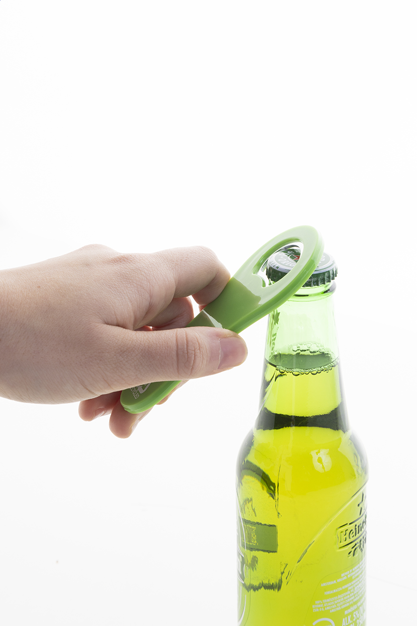 Otvírák na láhve z recyklovaného ABS plastu s magnetem na lednici.
