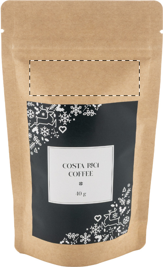 Pražená kostarická zrnková káva balená v přírodním kraftovém papírovém sáčku. 40 gramů.