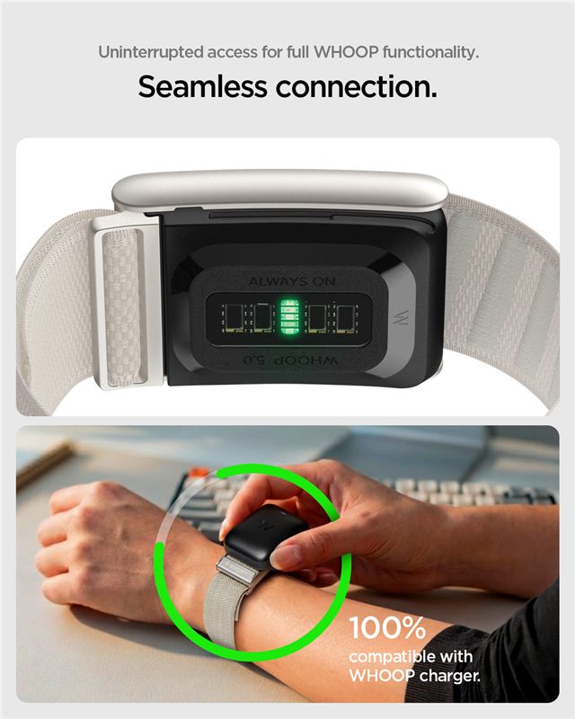 Bílý řemínek z jemné tkaniny poskytuje výjimečný komfort při nošení biometrického senzoru Whoop 5.0. Konstrukce plně odpovídá potřebám modelů One, Peak i Life, přičemž zajišťuje optimální kontakt s pokožkou pro nerušený sběr dat.