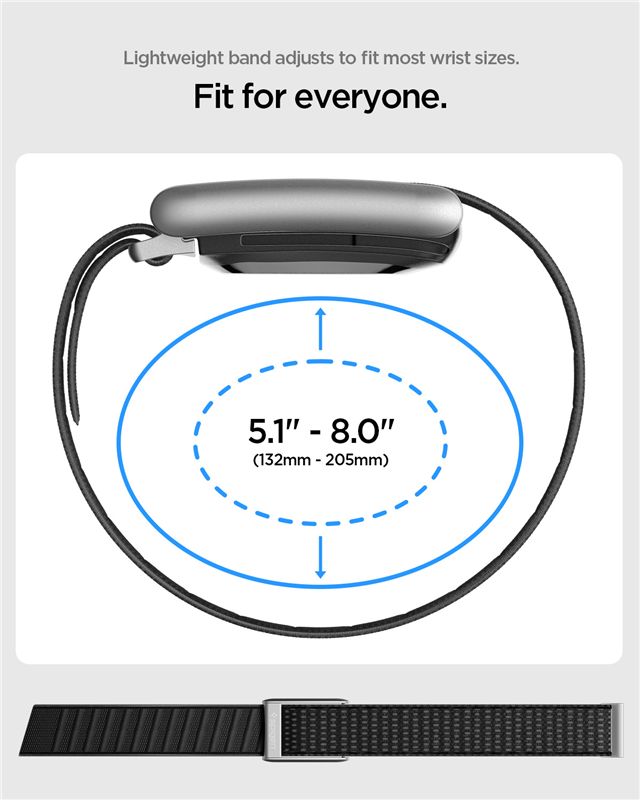 Udržuje tracker bezpečně na zápěstí o obvodu 132 až 205 mm i při vysoké intenzitě pohybu. Rychlý systém instalace nevyžaduje žádné nářadí a umožňuje okamžitou výměnu pásku při zachování plného přístupu ke všem funkcím.