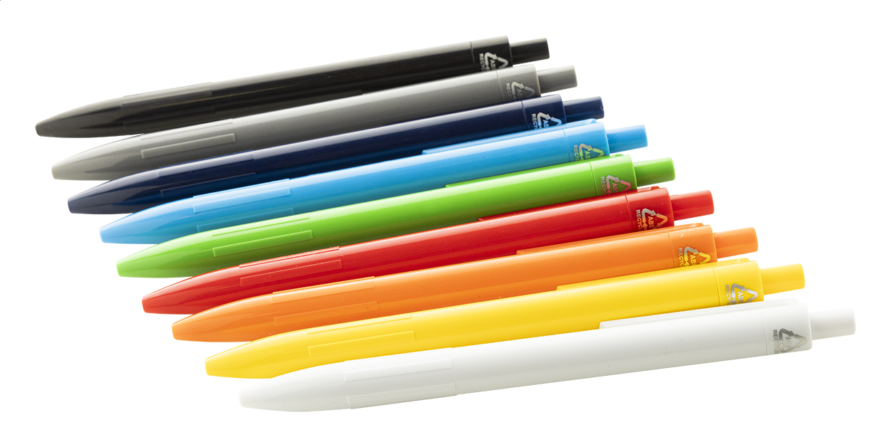 Kuličkové pero z recyklovaného ABS plastu s modrou náplní.