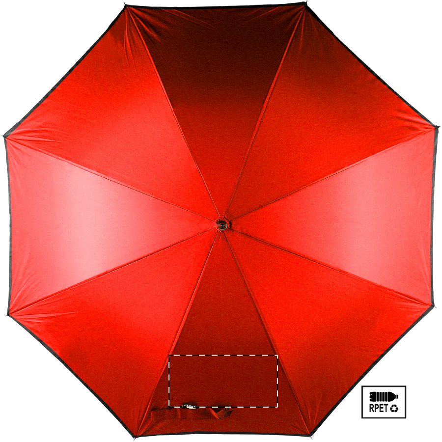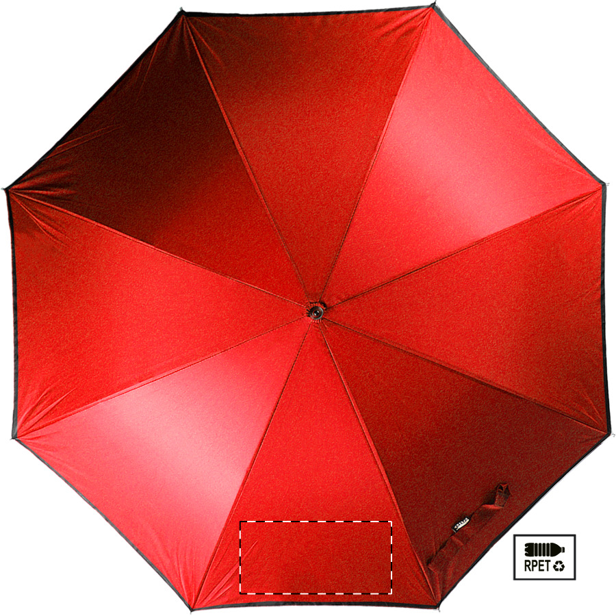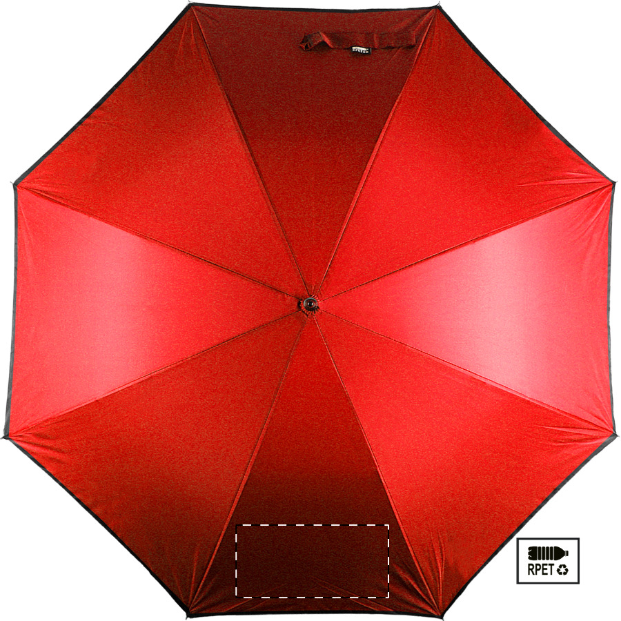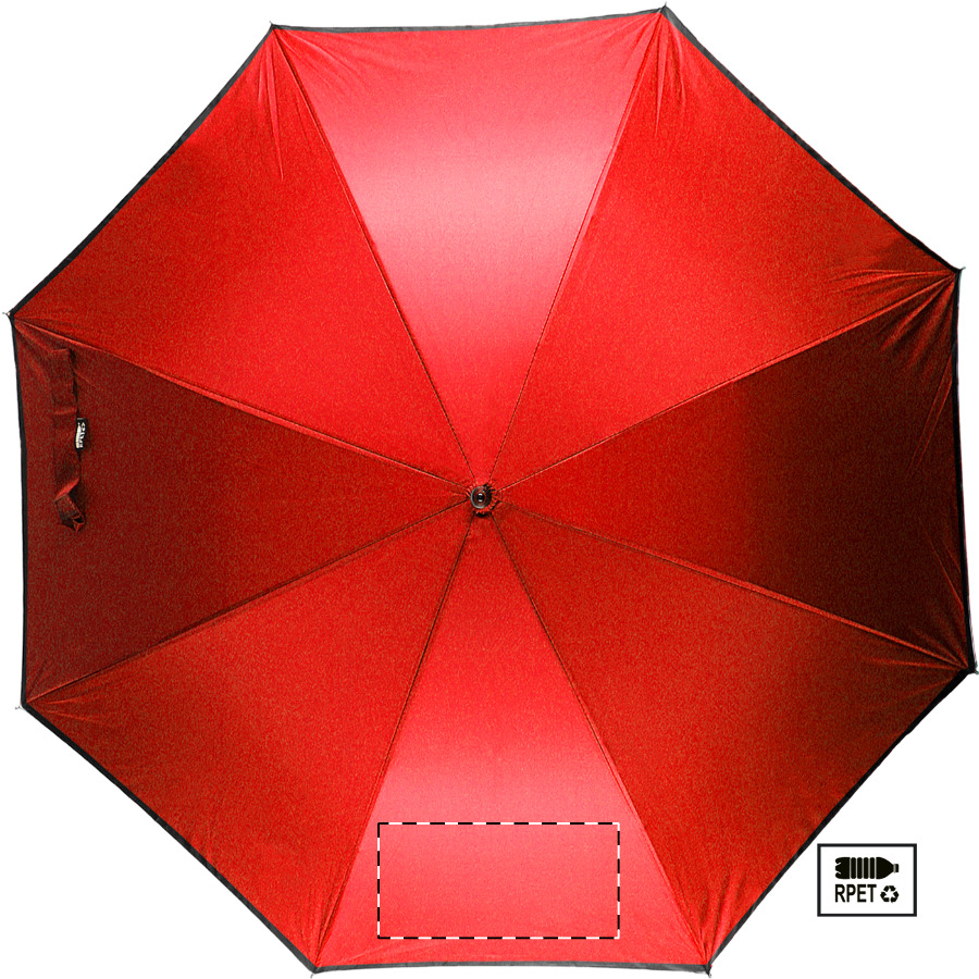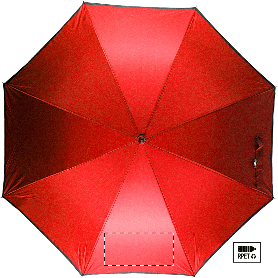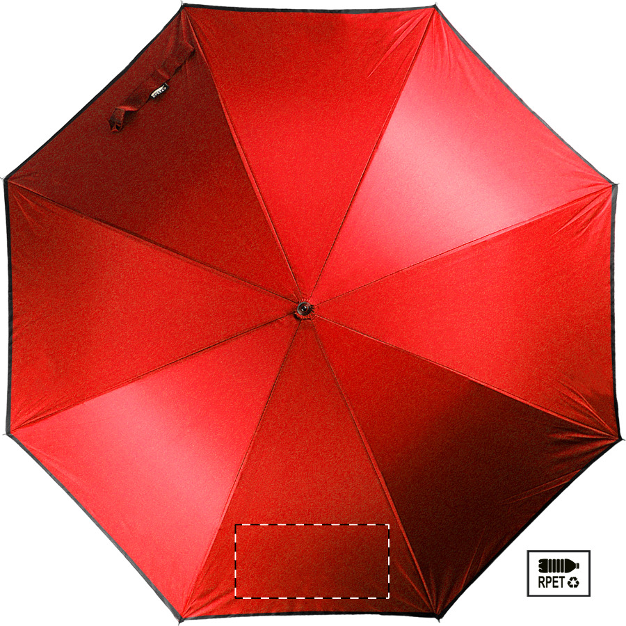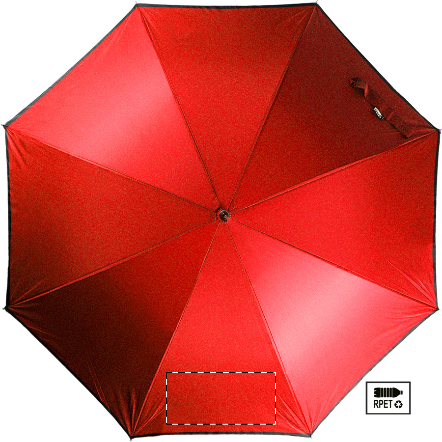 Automatický, větruodolný deštník s 8 panely a reflexním lemem. S kovovým rámem, sklolaminátovými žebry a EVA rukojetí. Pongee 190T RPET. S výrazným štítkem RPET. Pouze pro propagační účely se produkt nekvalifikuje jako osobní ochranný prostředek.