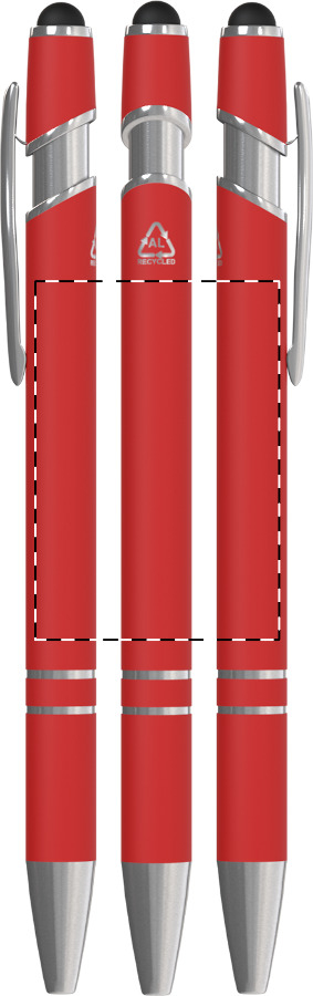 Červené dotykové pero vyrobené z hliníkového recyklátu vyniká sytou barvou a na dotek příjemným pogumovaným povrchem. Chromované doplňky podtrhují dynamický vzhled tohoto multifunkčního psacího nástroje.