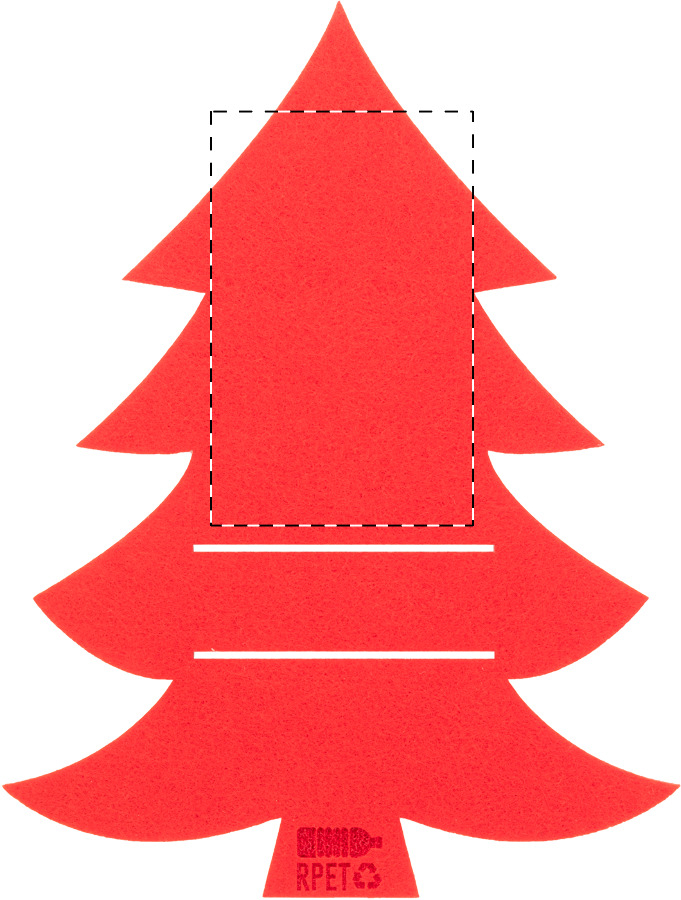 Sada 4 ks RPET plstěných držáků na příbory ve tvaru vánočního stromku. V kraftové papírové krabici.