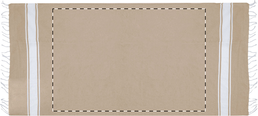 Dvoubarevná plážová osuška pareo s integrovaným stahovacím vakem. 70 % recyklované bavlny a 30 % RPET polyesteru, 180 g/m².