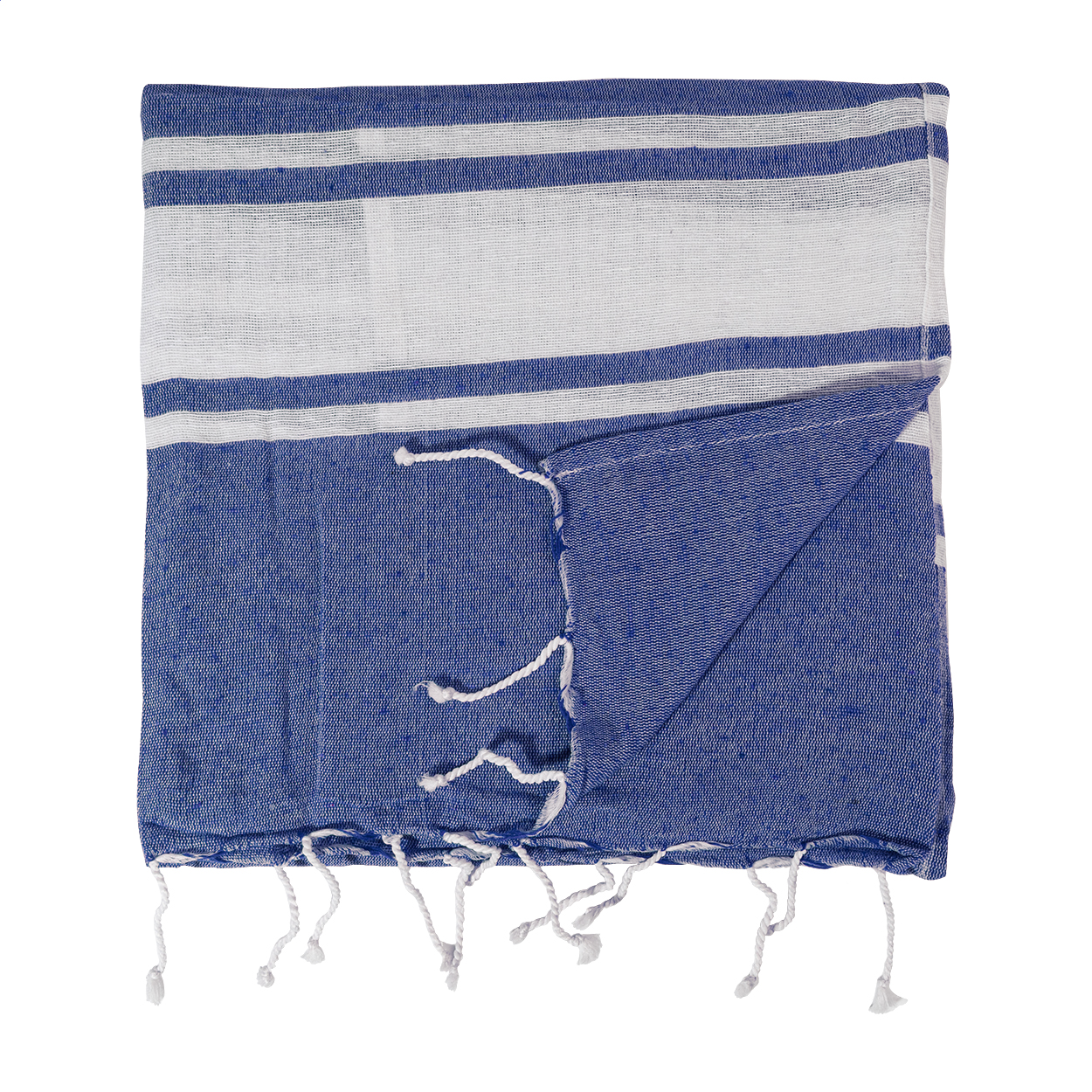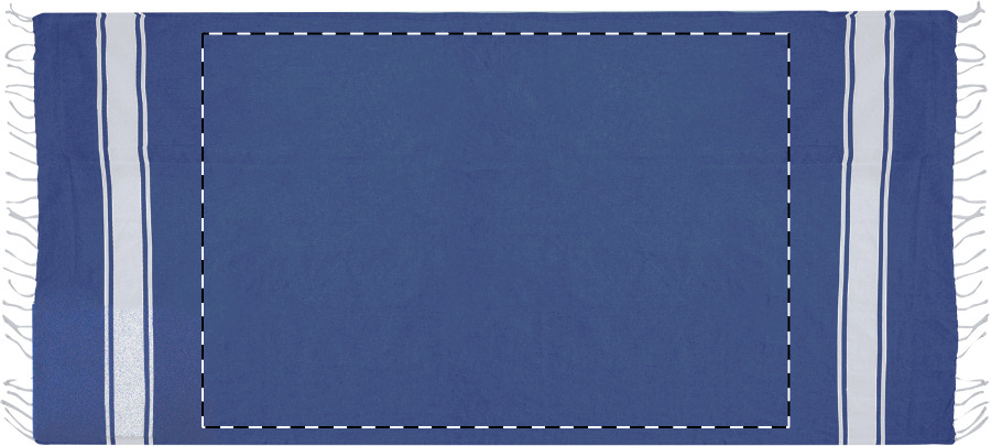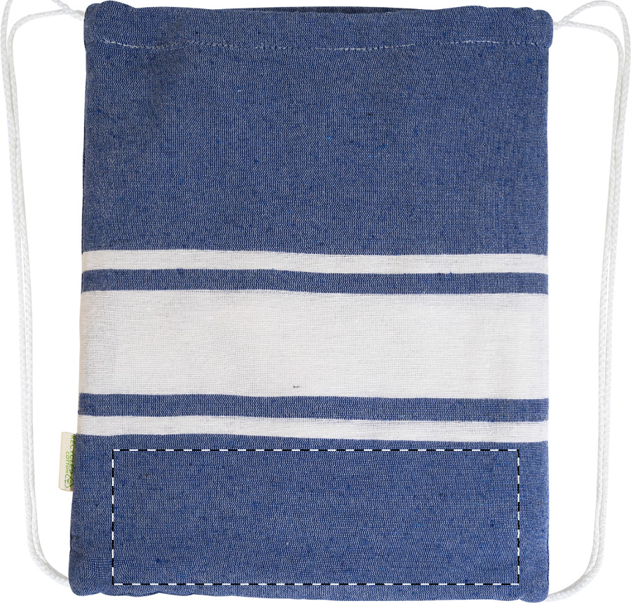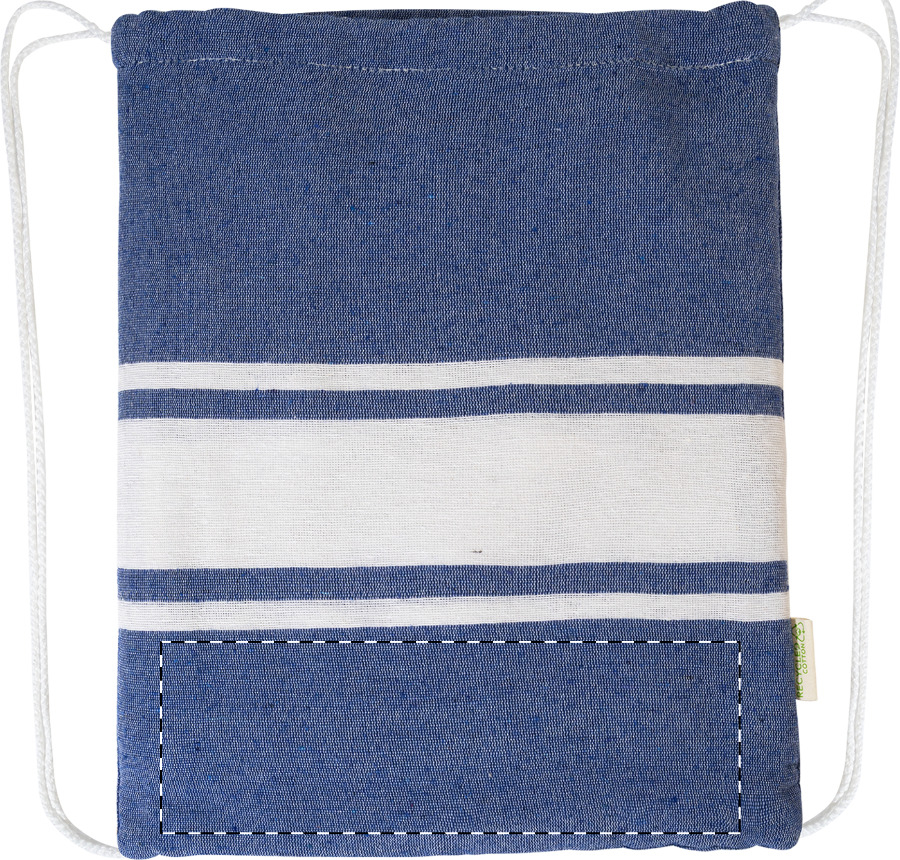 Dvoubarevná plážová osuška pareo s integrovaným stahovacím vakem. 70 % recyklované bavlny a 30 % RPET polyesteru, 180 g/m².
