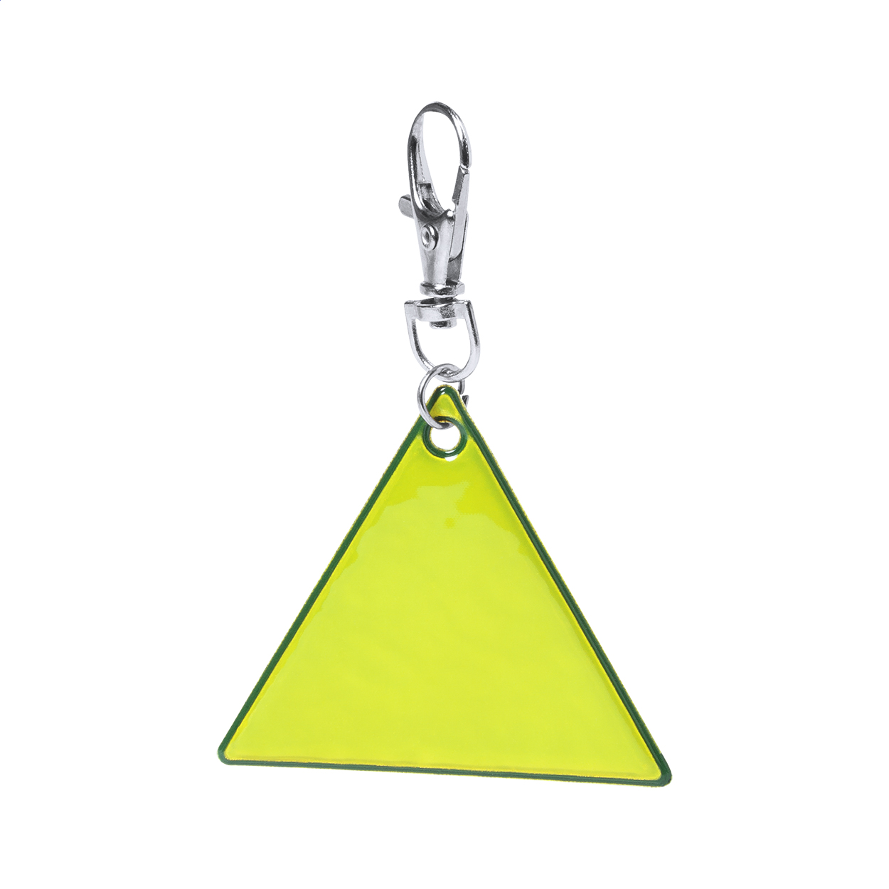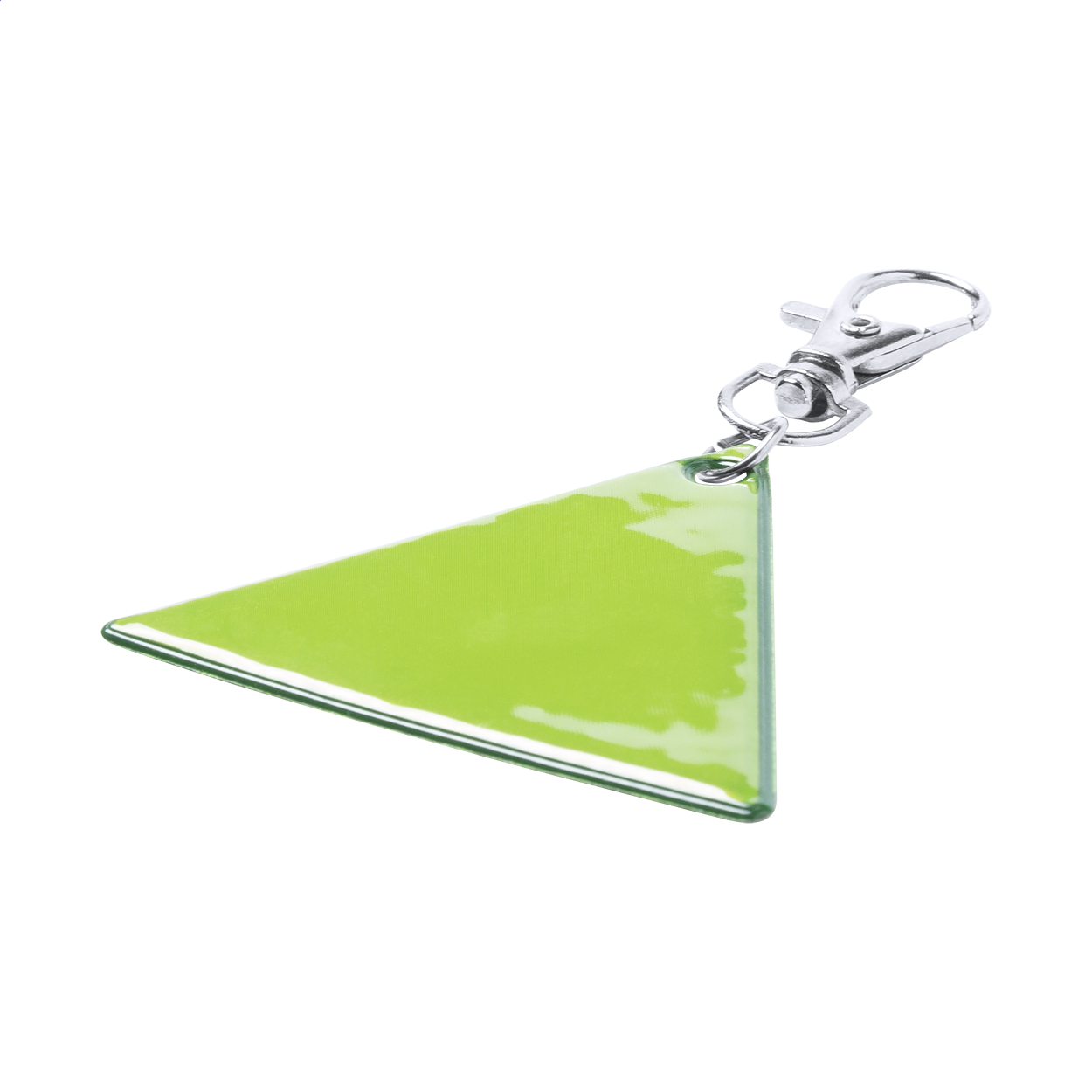 Trojúhelníkový reflexní přívěsek na klíče s karabinkou. Materiál PVC.