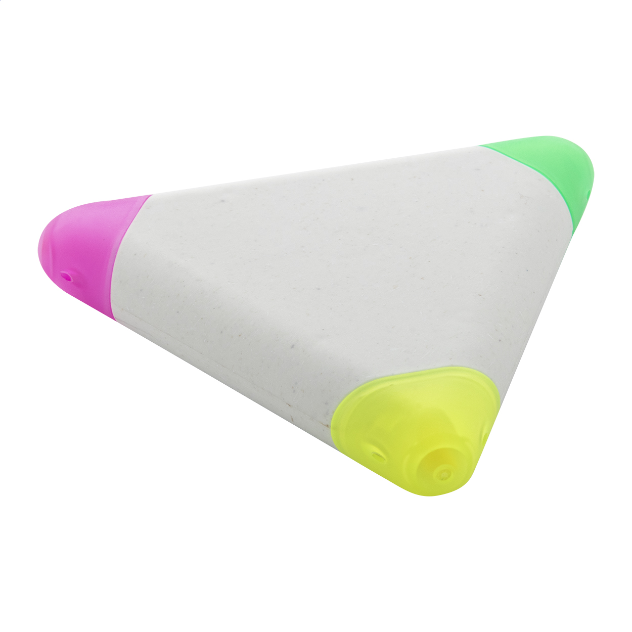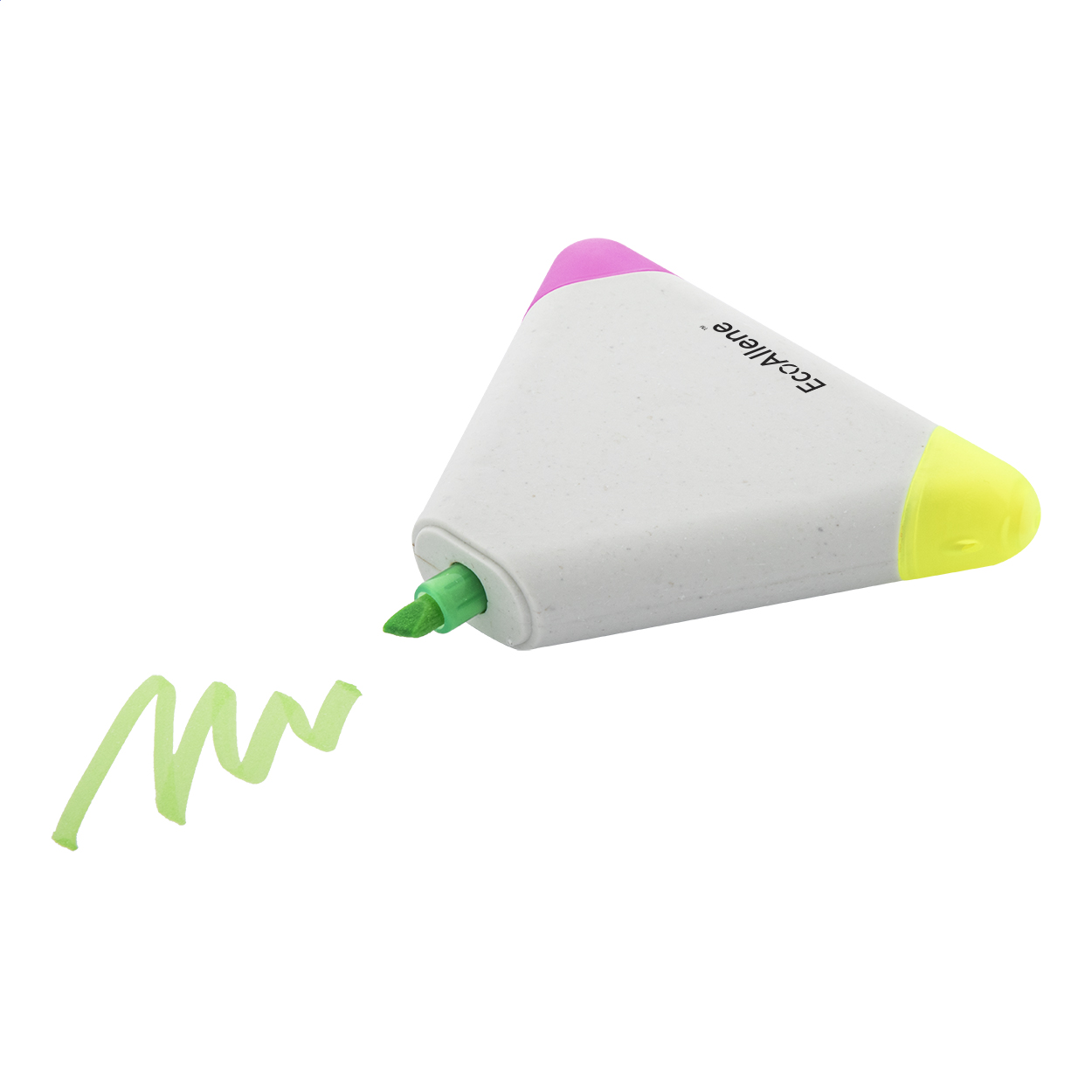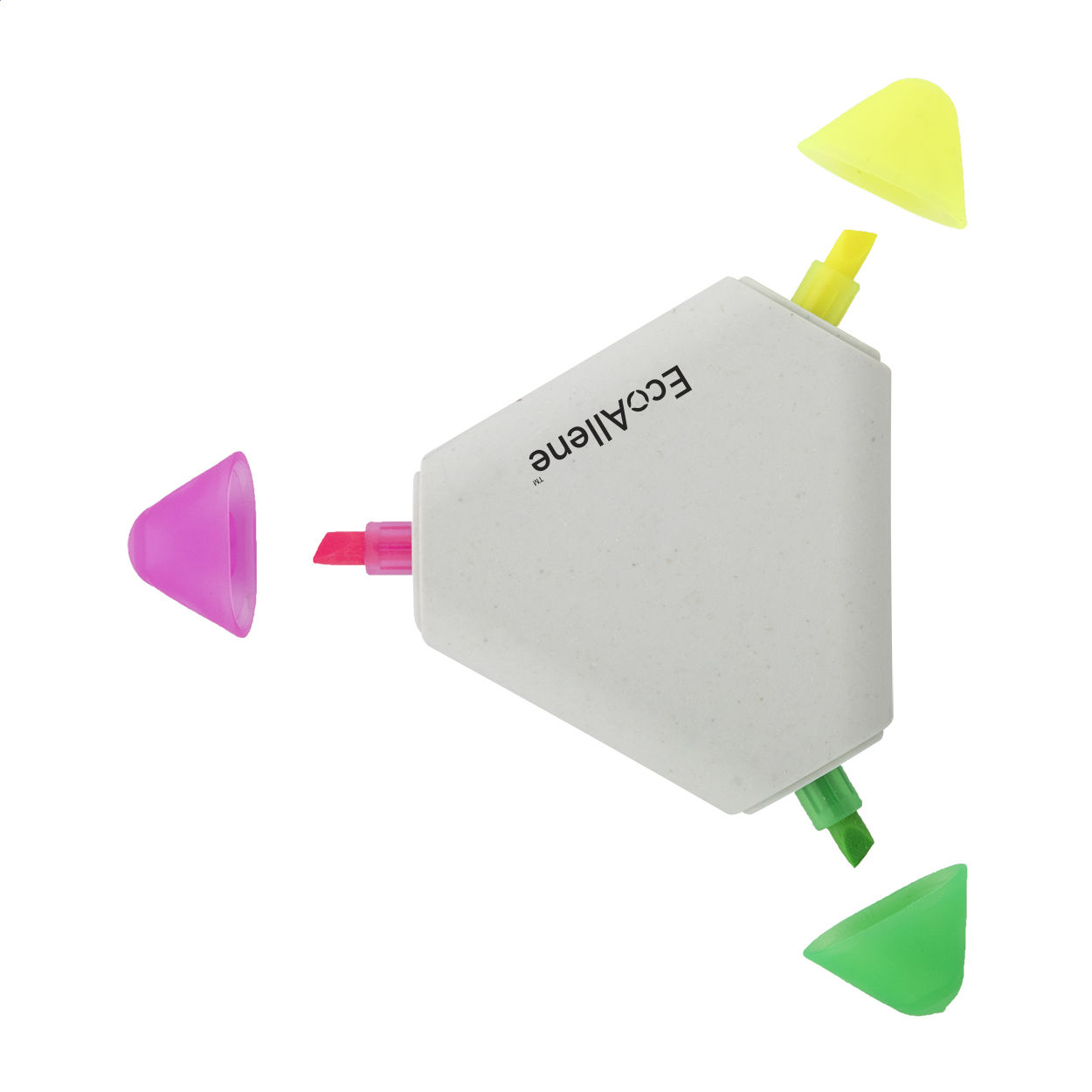 Zvýrazňovač ve tvaru trojúhelníku se 3 barvami z recyklovaného plastu EcoAllene®. EcoAllene® je nový a inovativní materiál získaný z recyklace nápojových kartonů.