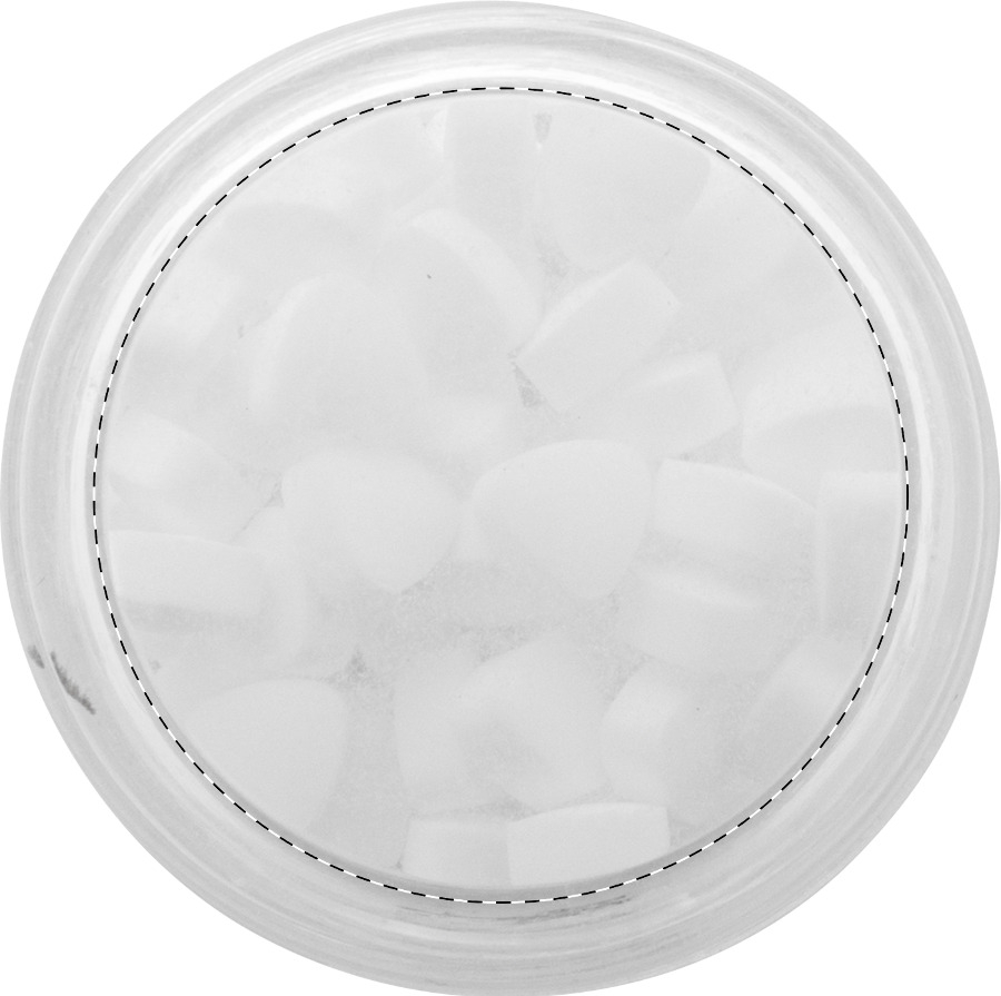 Kulatá průhledná plastová dóza s mintovými bonbóny s barevným šroubovacím víčkem. Obsahující cca. 12 gramů mentolových bonbonů bez cukru.
