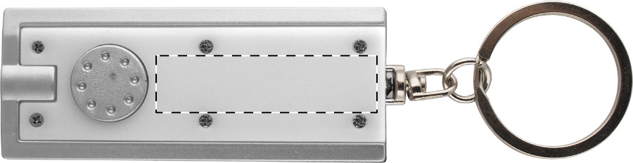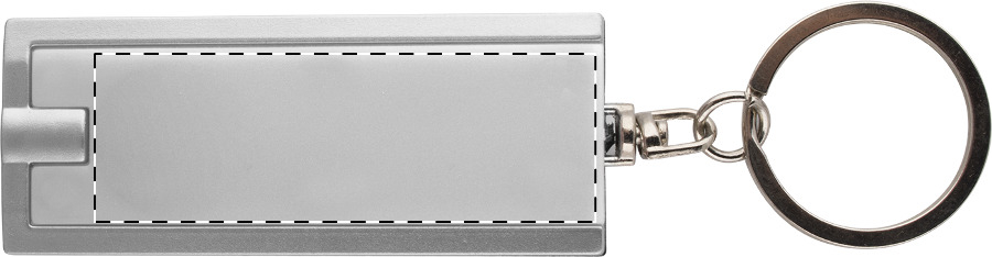 Přívěšek na klíče z recyklovaného ABS materiálu s LED svítilnou a kovovým kroužkem. S knoflíkovými bateriemi.