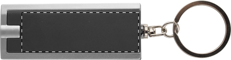 Přívěšek na klíče z recyklovaného ABS materiálu s LED svítilnou a kovovým kroužkem. S knoflíkovými bateriemi.