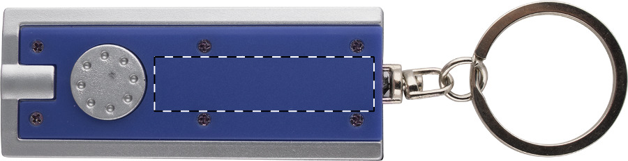 Přívěšek na klíče z recyklovaného ABS materiálu s LED svítilnou a kovovým kroužkem. S knoflíkovými bateriemi.
