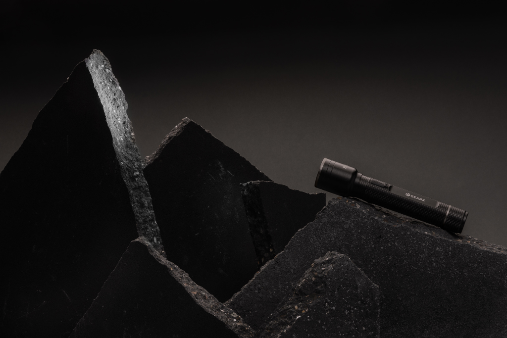 Velká USB svítilna ELISION z recyklovaného hliníku - černá