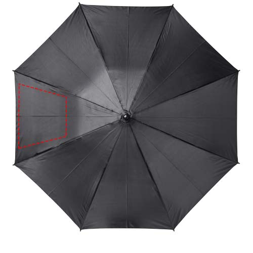 Deštník s automatickým otevíráním, pevnou kovovou tyčí a rámem ze sklolaminátu. Výborně odolává povětrnostním vlivům. Rovná plastová rukojeť, špičky žeber a horní část. Materiál: polyester.
