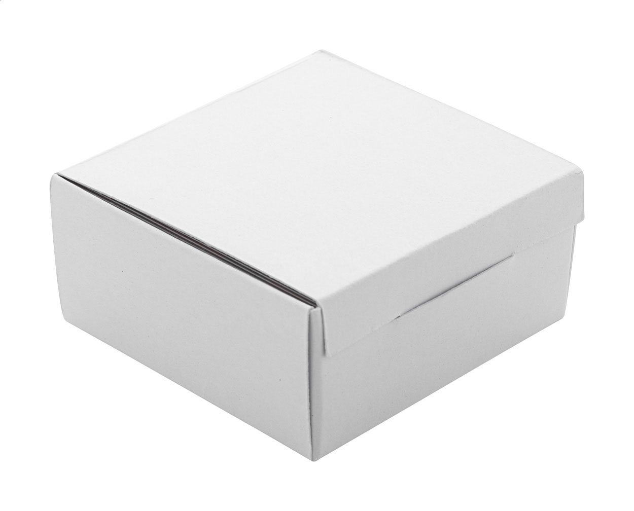 100 ks na zakázku vyrobených vizitek čtvercového tvaru s plnobarevně tištěnou grafikou na obou stranách. Matný bílý papír, 350 g/m². V bílé papírové krabičce.