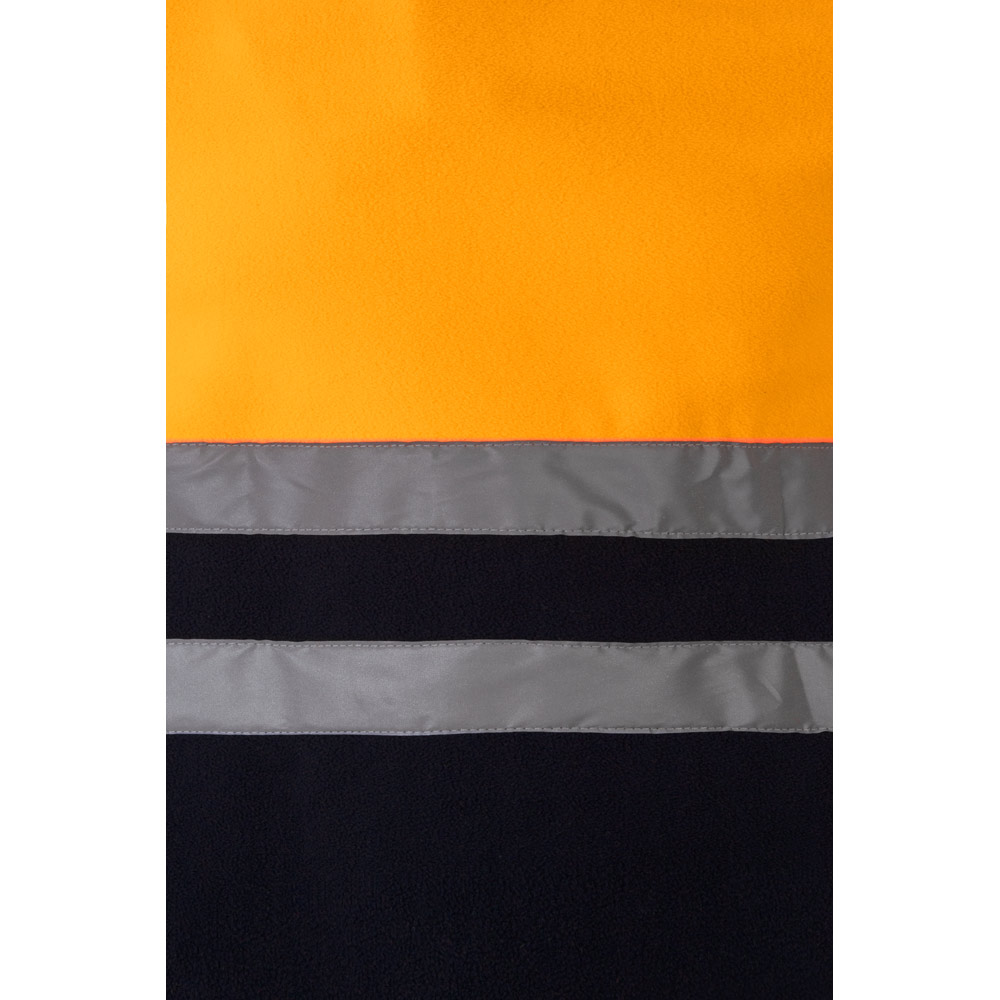 Dvoubarevná fleecová bunda (280 g/m²), z polyesteru (100%). S centrálním zipem, elastickými manžetami a nastavitelnou zátkou na boku. Reflexní pruhy na trupu a rukávech. Obsahuje tři kapsy, na zip. Výrobek v souladu s nařízením EU 2016/425, certifikovaný podle EN20471 a třídy č. 1