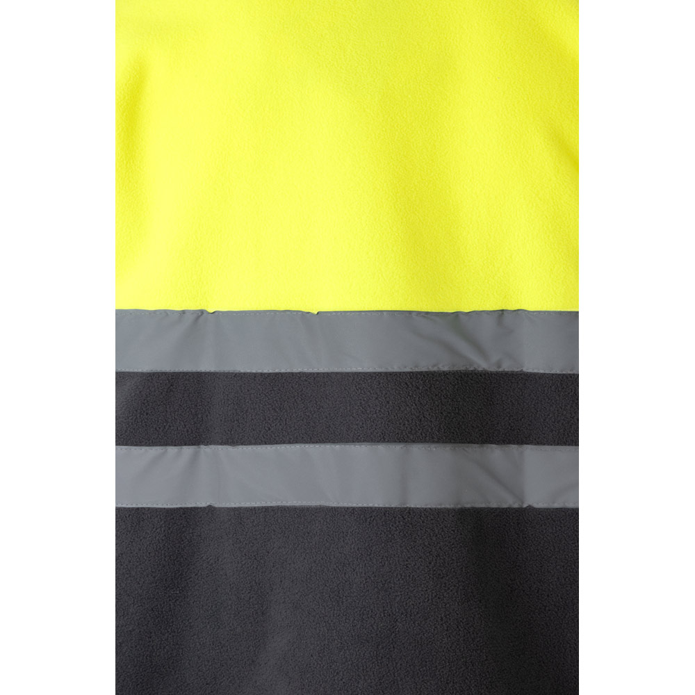 Dvoubarevná fleecová bunda (280 g/m²), z polyesteru (100%). S centrálním zipem, elastickými manžetami a nastavitelnou zátkou na boku. Reflexní pruhy na trupu a rukávech. Obsahuje tři kapsy, na zip. Výrobek v souladu s nařízením EU 2016/425, certifikovaný podle EN20471 a třídy č. 1