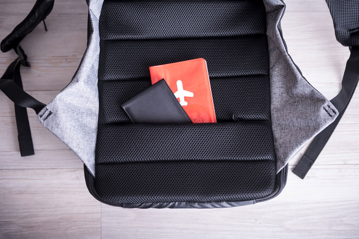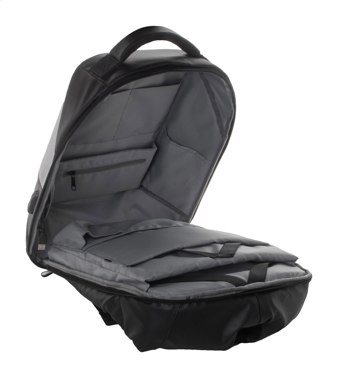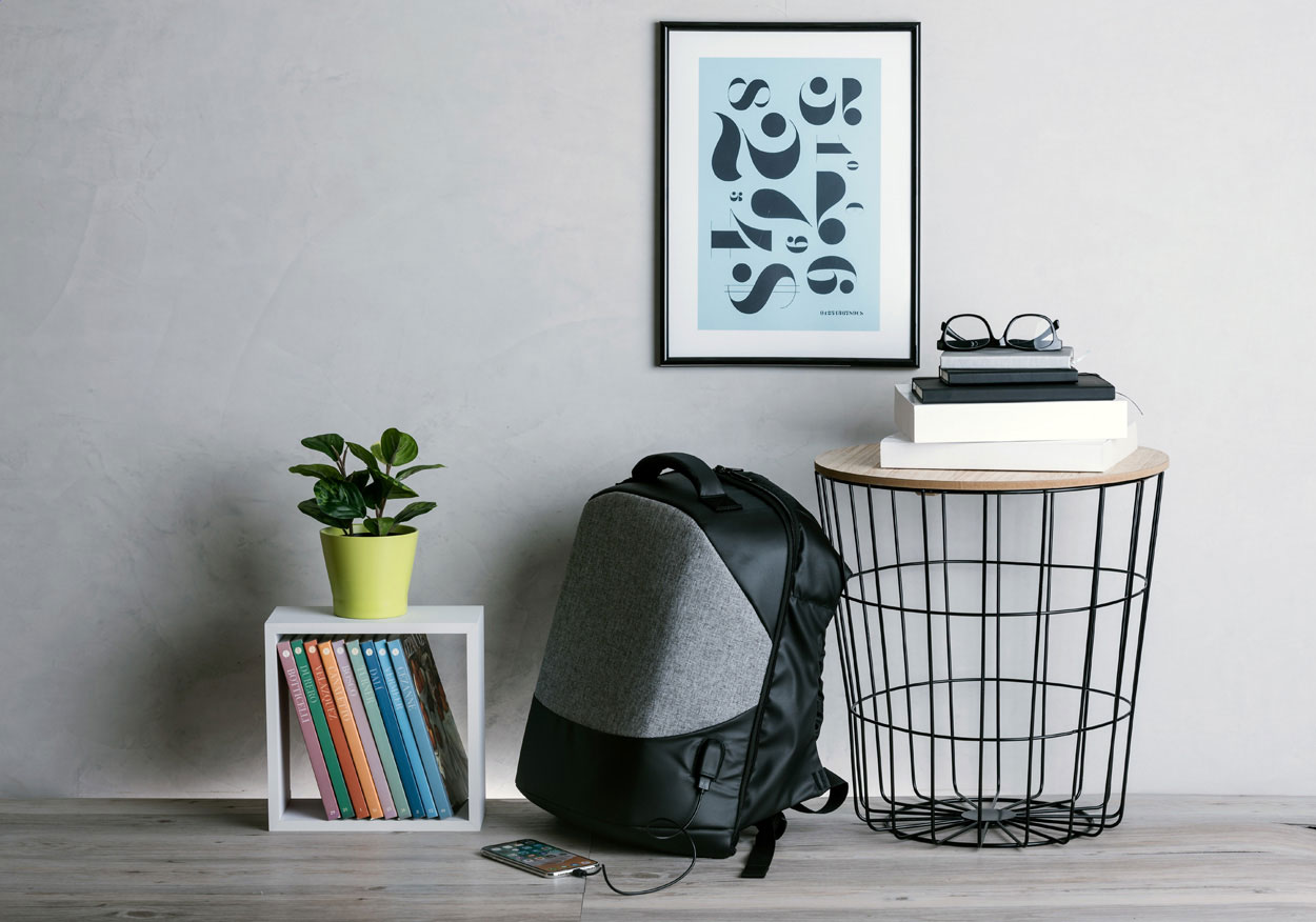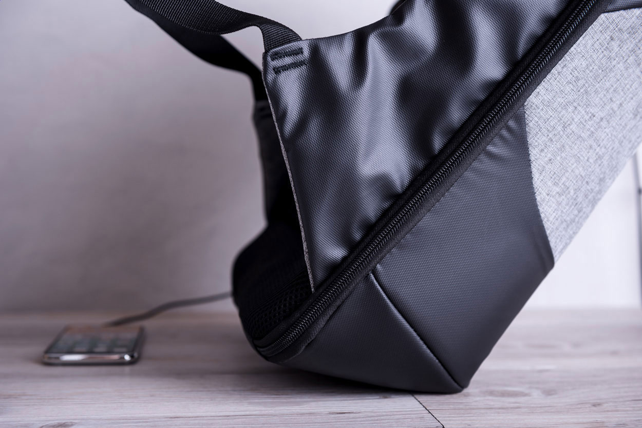 Voděodolný batoh s ochranou proti krádeži nabízí spoustu přihrádek na zip, polstrovanou kapsu na laptop (až 15 palců) a tablet (až 10 palců). Batoh má polstrovaná záda a ramenní popruhy. S vestavěným USB konektorem pro připojení powerbanky. Materiál 1200D nylon.