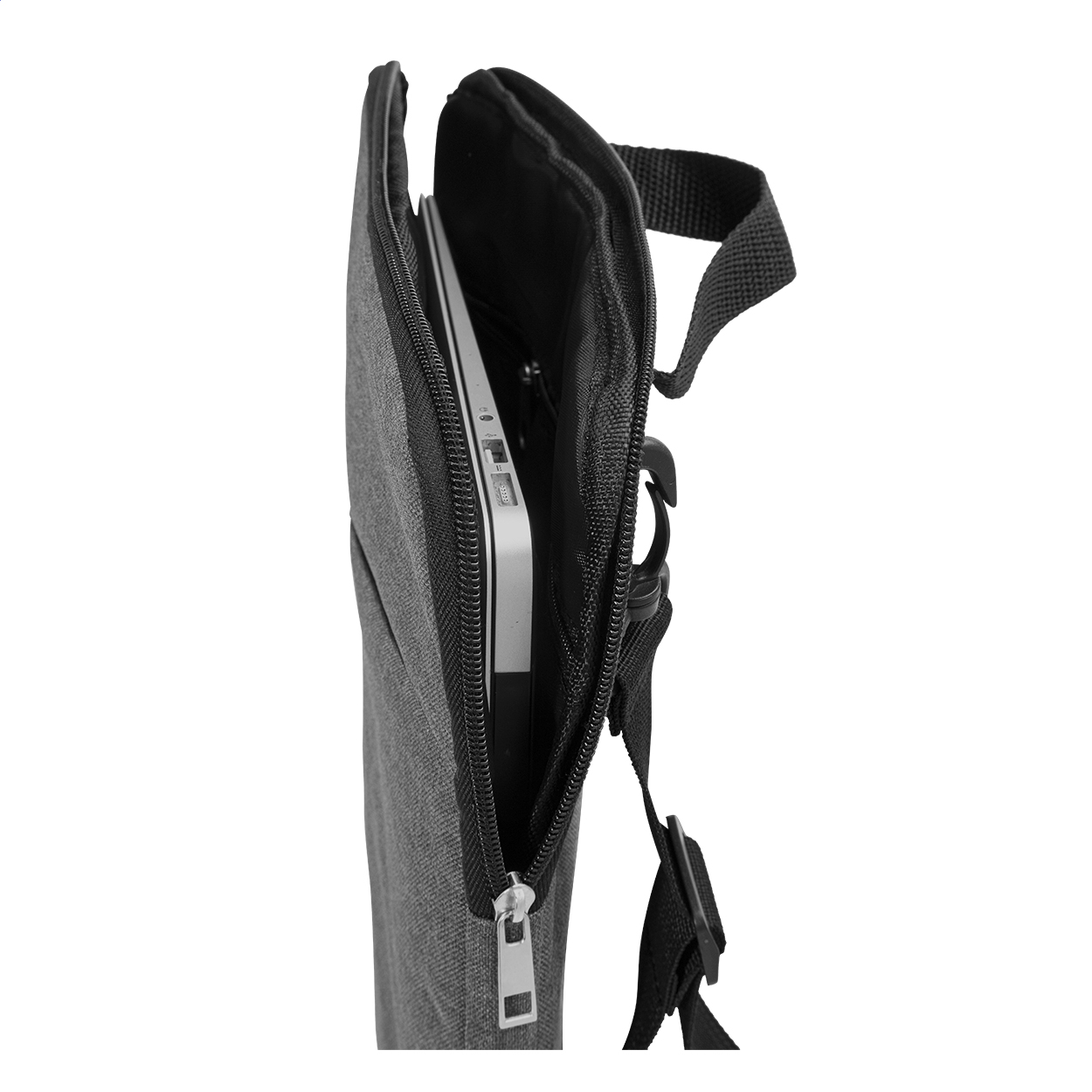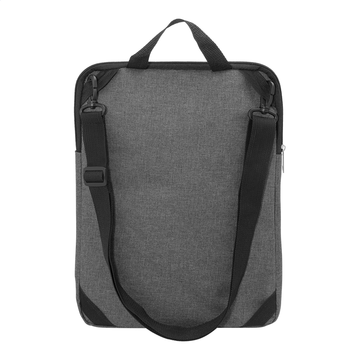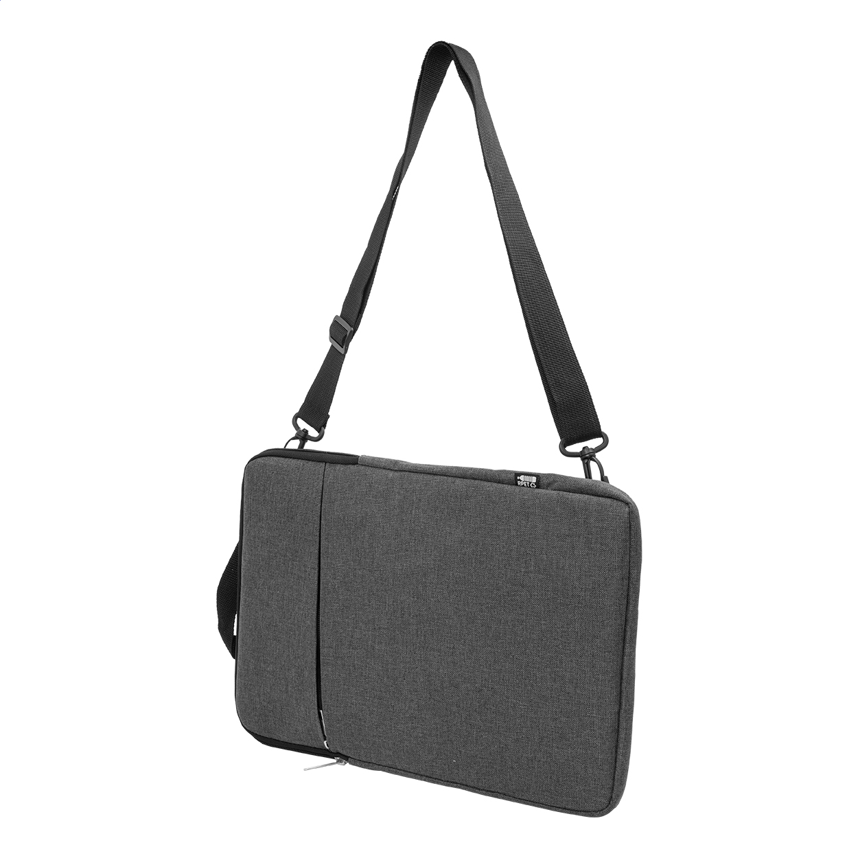 Polstrovaná taška přes rameno z polyesteru 600D RPET na dokumenty nebo notebook s přihrádkou na zip a přední kapsou na zip. Vhodná pro notebooky do velikosti 15". S nastavitelným ramenním popruhem vybaveným vertikální a horizontální polohou. S výrazným štítkem RPET.